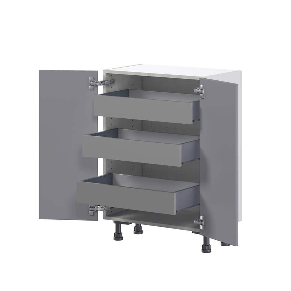 J COLLECTION Bristol Painted Slate Gray Shaker Assembled Base Kitchen Cabinet with 3 Inner Drawers (24 in. W x 34.5 in. H x 14 in. D)