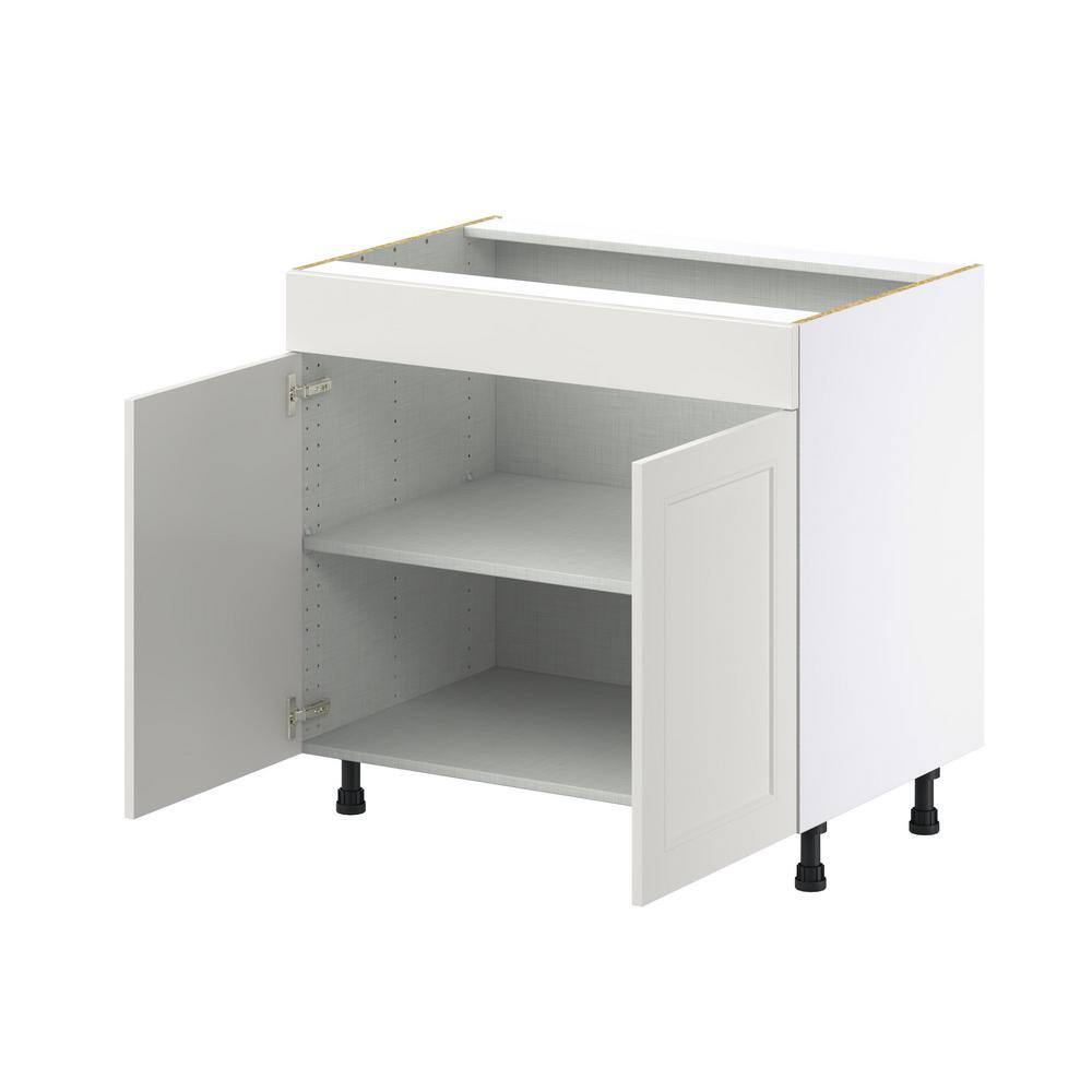 The J COLLECTION Littleton Painted Gray Shaker Base Kitchen Cabinet is designed for effortless style and superior functionality. With its elegant frameless construction and smooth, chip-resistant doors, it offers both durability and ease of use. The cabinet's adjustable legs and easy-to-clean surfaces make installation and maintenance a breeze, perfect for professional and DIY renovations.