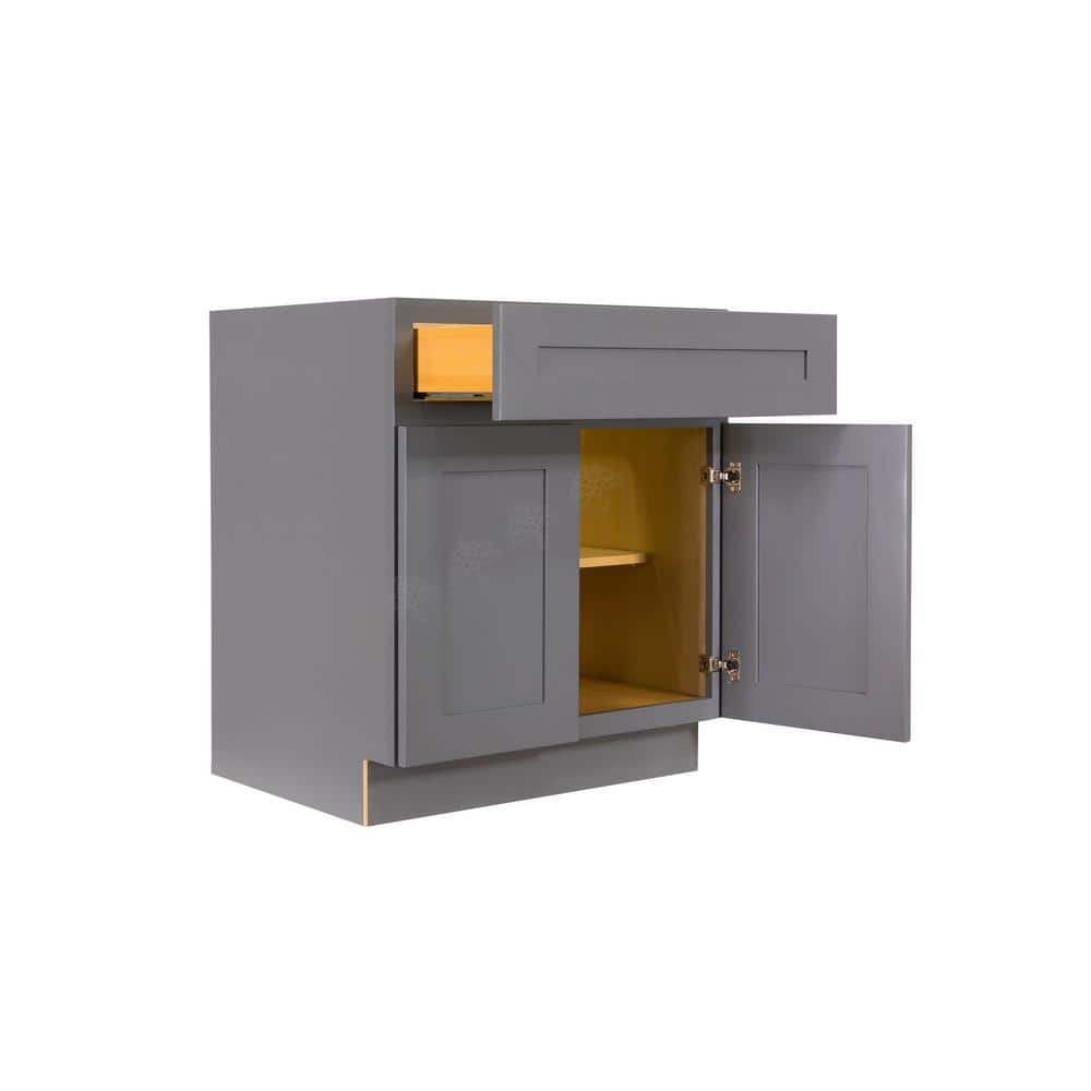 Revitalize your kitchen with the LIFEART CABINETRY Lancaster Gray Shaker Base Cabinet. Constructed from solid hardwoods and furniture-grade plywood, this cabinet combines durability and style with a chic dark gray finish. Soft-close features and eco-friendly materials make it an ideal choice for sustainable, modern homes.
