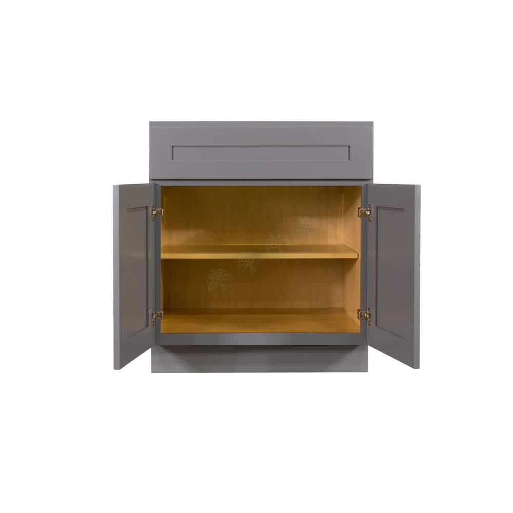 LIFEART CABINETRY Lancaster Gray Plywood Shaker Stock Assembled Base Kitchen Cabinet 30 in. in. W x 34.5 in. in. W x 24 in. D