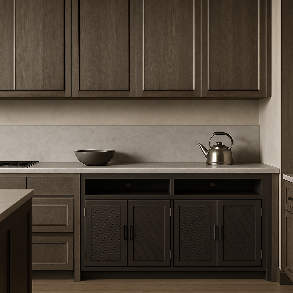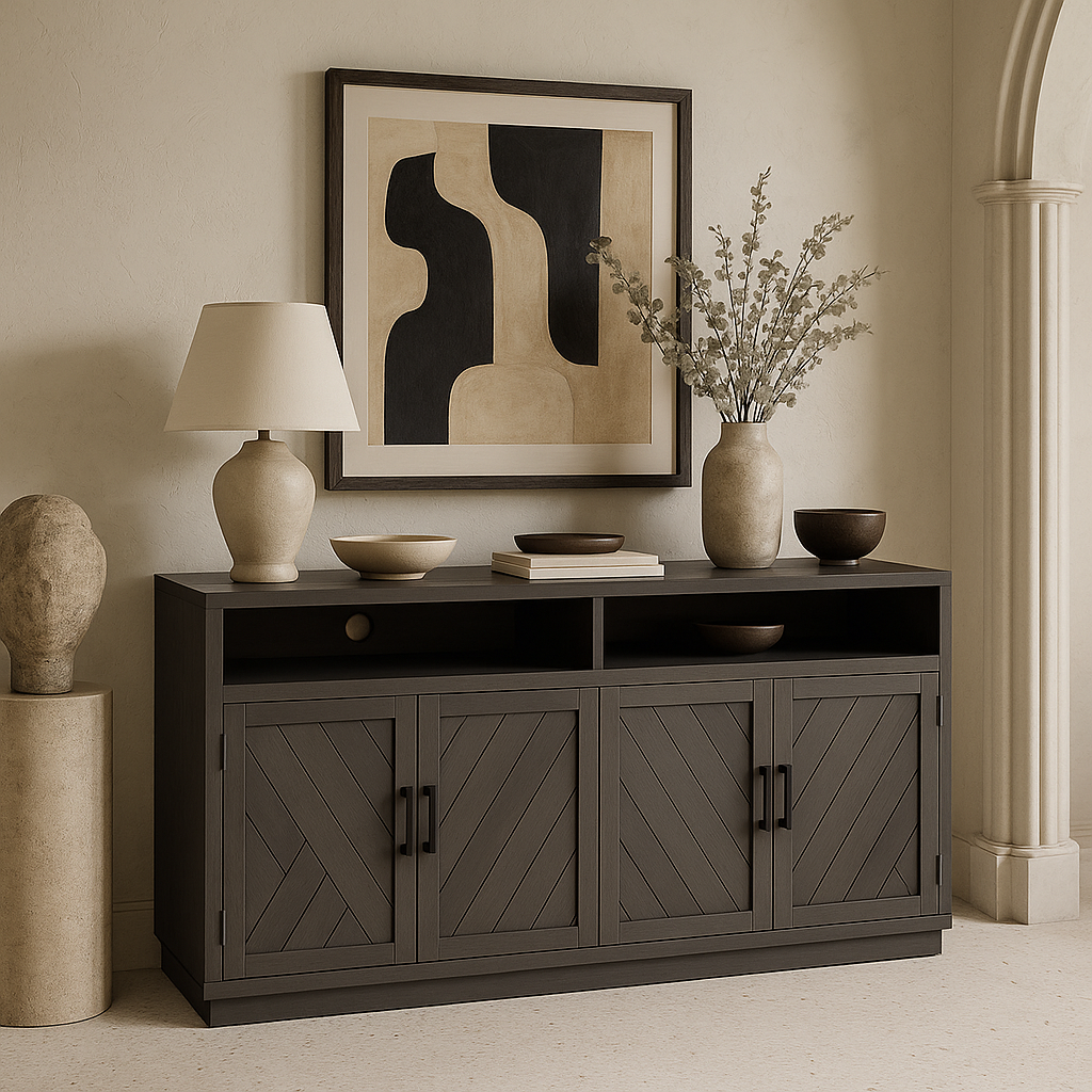 The Runesay Gray Brown MDF Kitchen Cabinet Sideboard combines timeless retro design with premium materials for a versatile storage solution. Featuring a painted finish, adjustable shelves, and soft-close doors, this sideboard is perfect for organizing and enhancing any space.