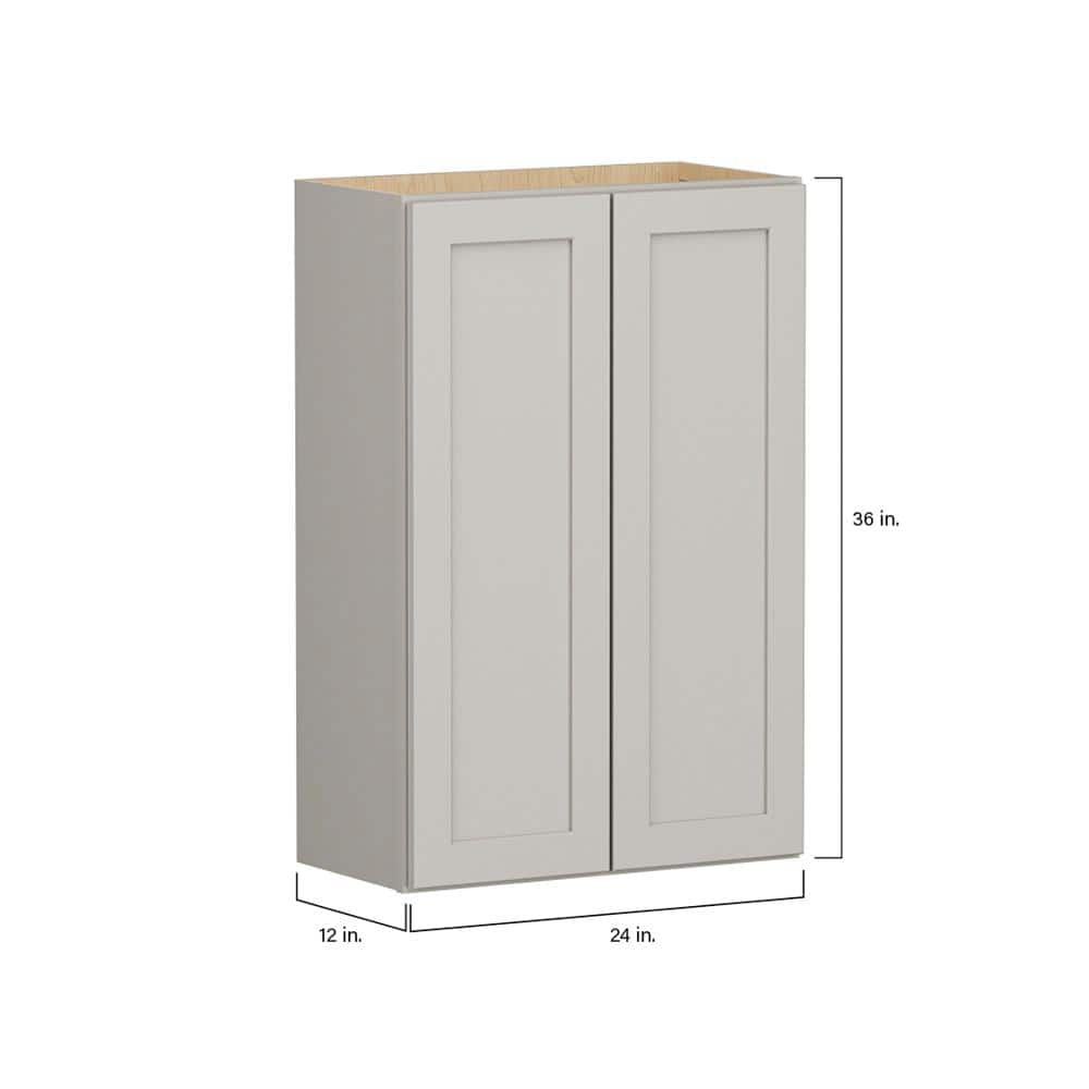 SIMPLY WOODMARK PRO Shaker Full Overlay 24 in. W x 12 in. D x 36 in. H Plywood Assembled Wall Kitchen Cabinet in Stone Gray