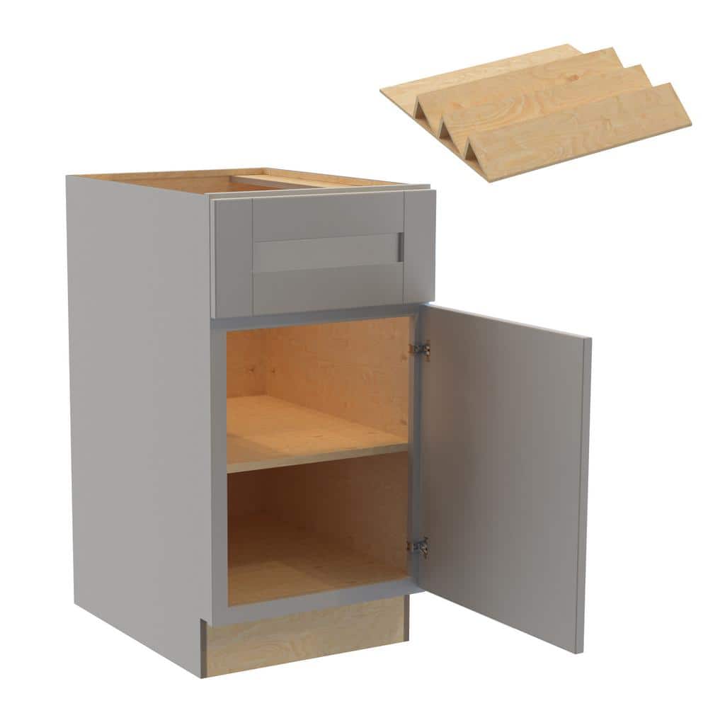 Washington 18 in. W x 24 in. D x 34.5 in. H Veiled Gray Plywood Shaker Assembled Base Kitchen Cabinet Right Spice Tray