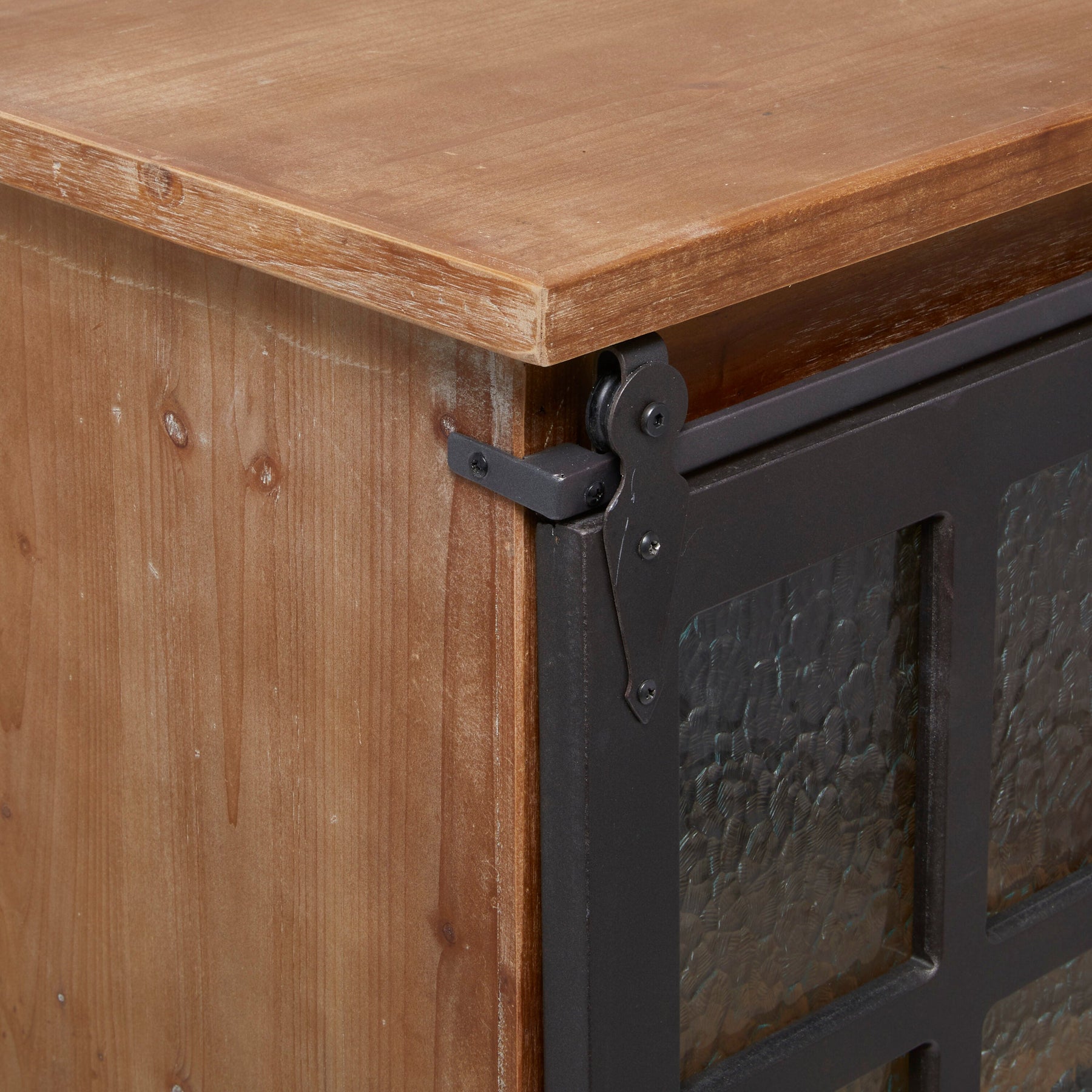 Elevate your living space with the Grayson Lane Pine Brown Bar Cabinet, an industrial-chic storage solution crafted from robust pine wood, metal, and glass. With its sliding door, wine storage, and integrated glass rack, this cabinet combines functionality and timeless design, making it perfect for any modern interior.