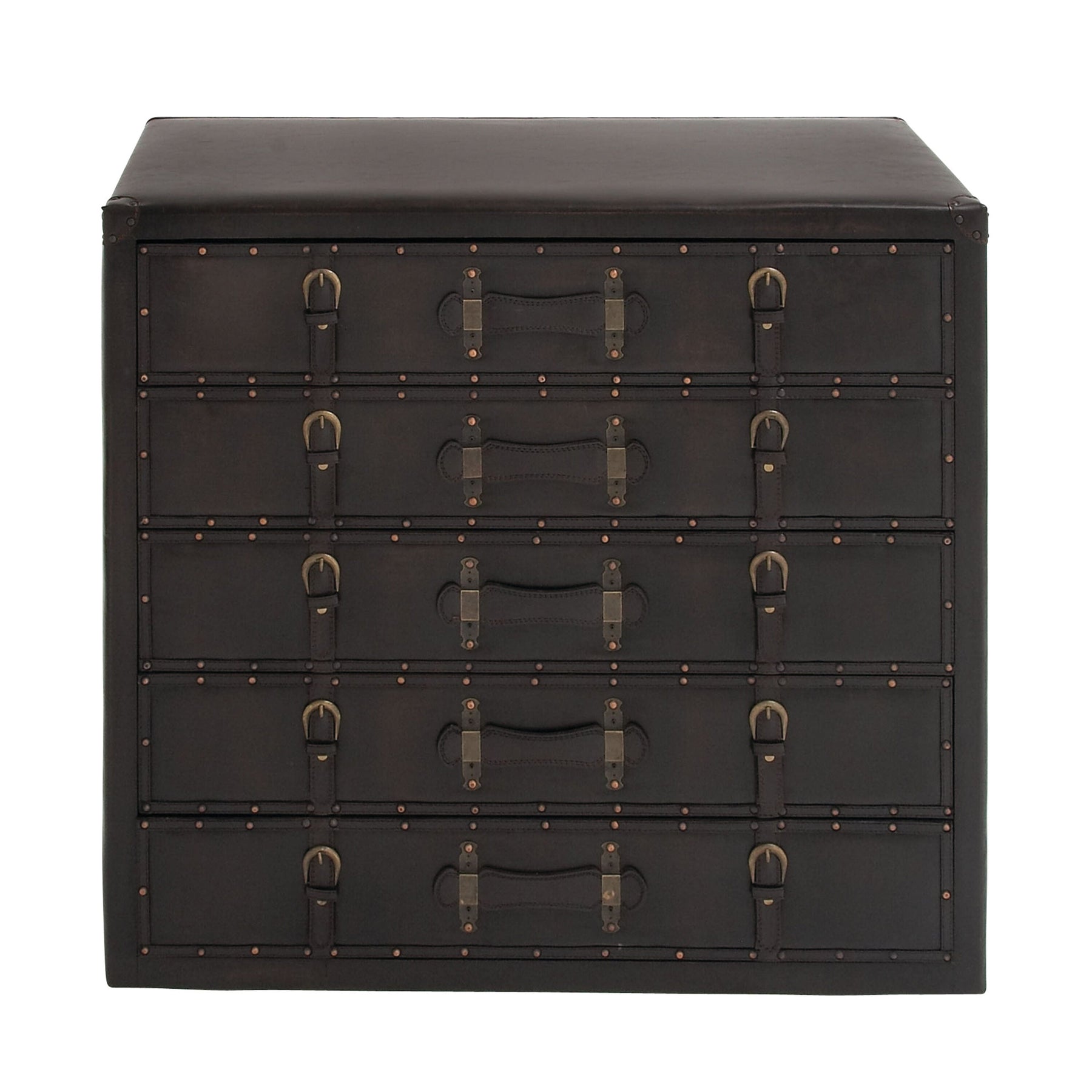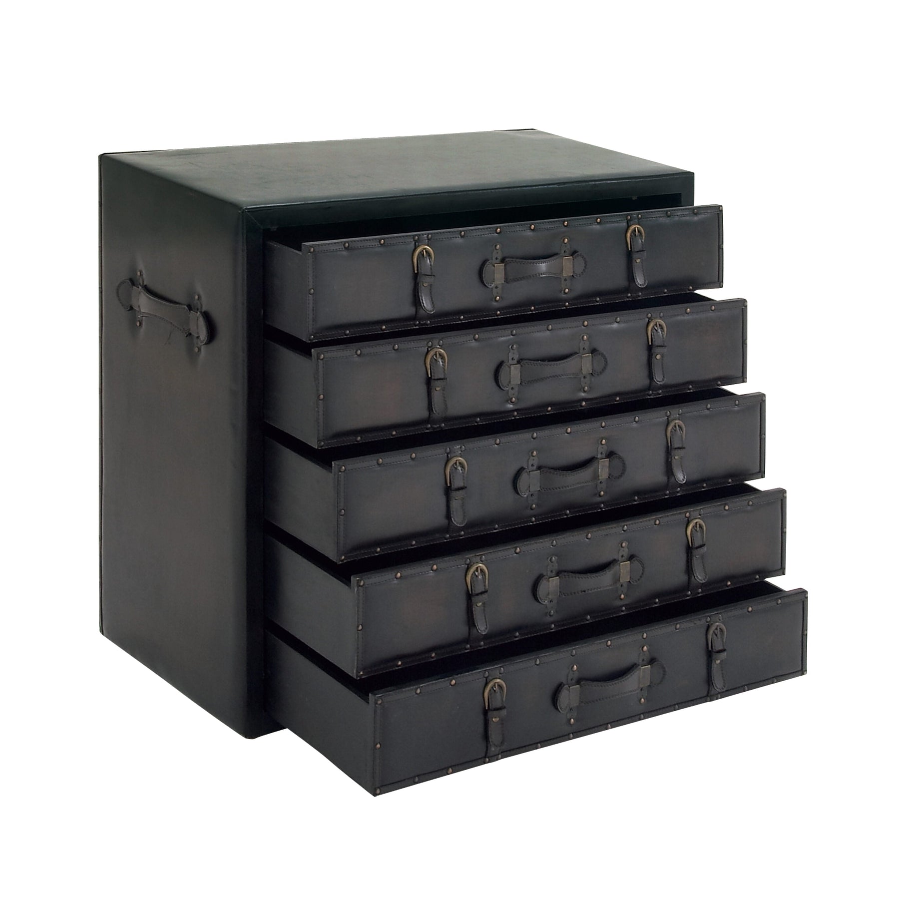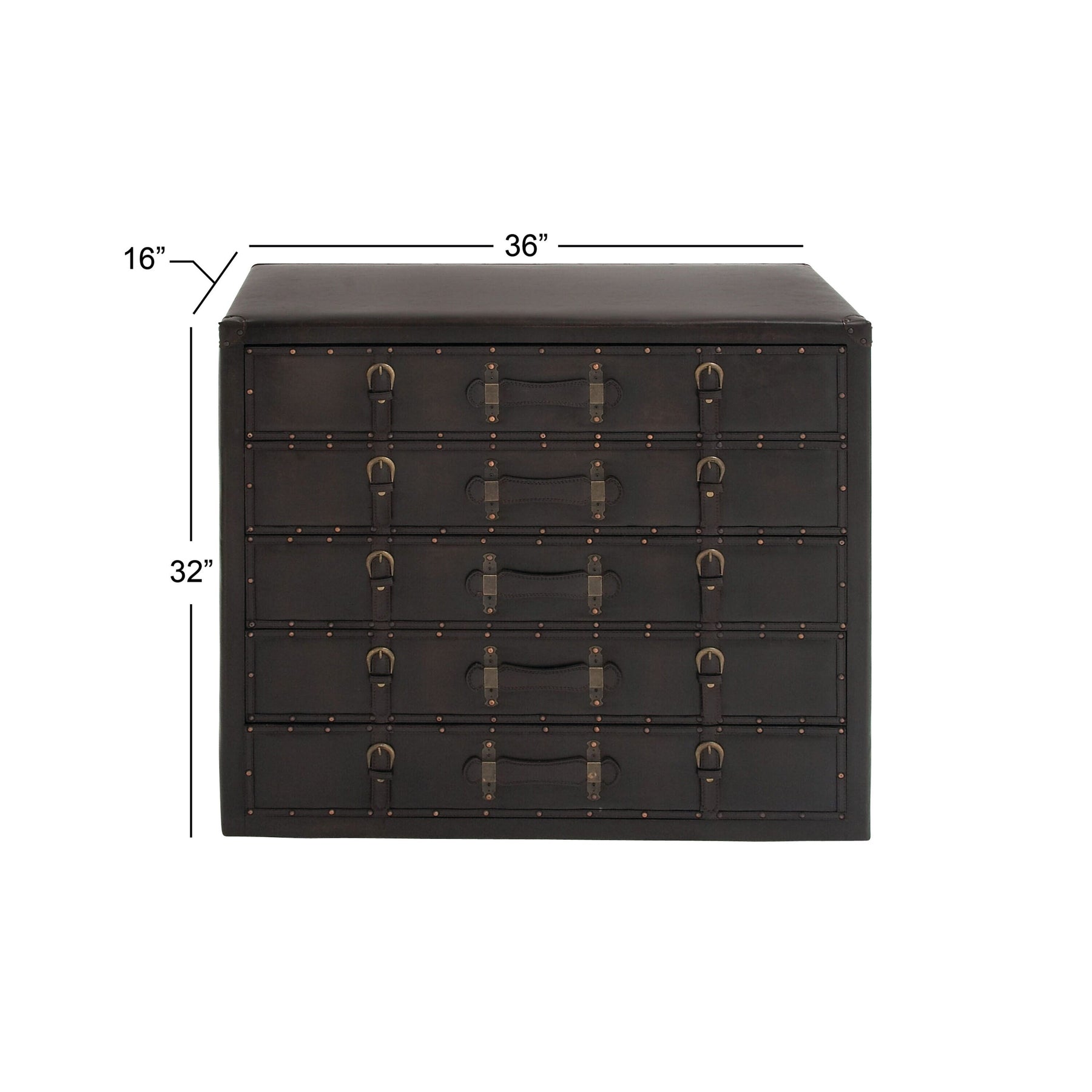 Grayson Lane Black Vintage Faux Leather with Buckles 5-Drawer Accent Chest