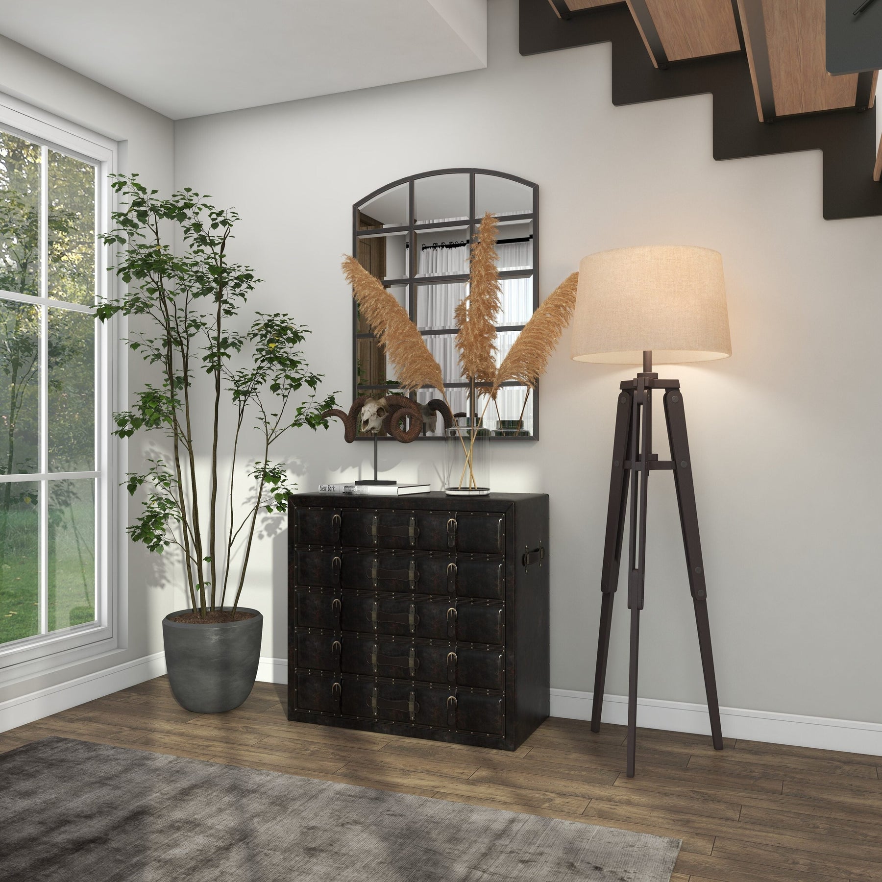 Add a stylish touch of old-world elegance to any room with the Grayson Lane Black Vintage Faux Leather 5-Drawer Accent Chest. Crafted from solid wood and detailed with antique gold hardware, this chest combines practicality with timeless design. Its faux leather exterior and vintage-inspired details offer an authentic, sophisticated look for your traditional home setting.