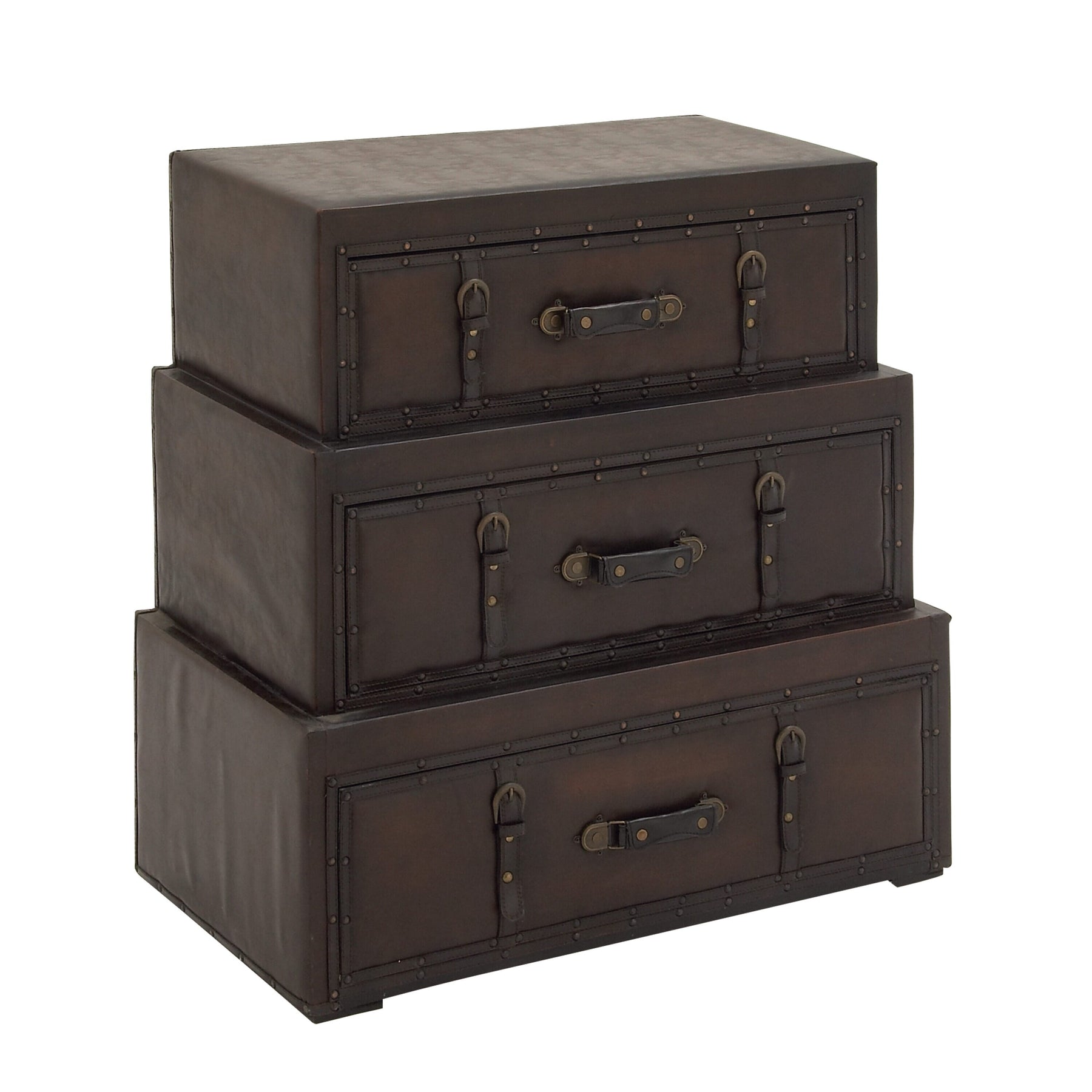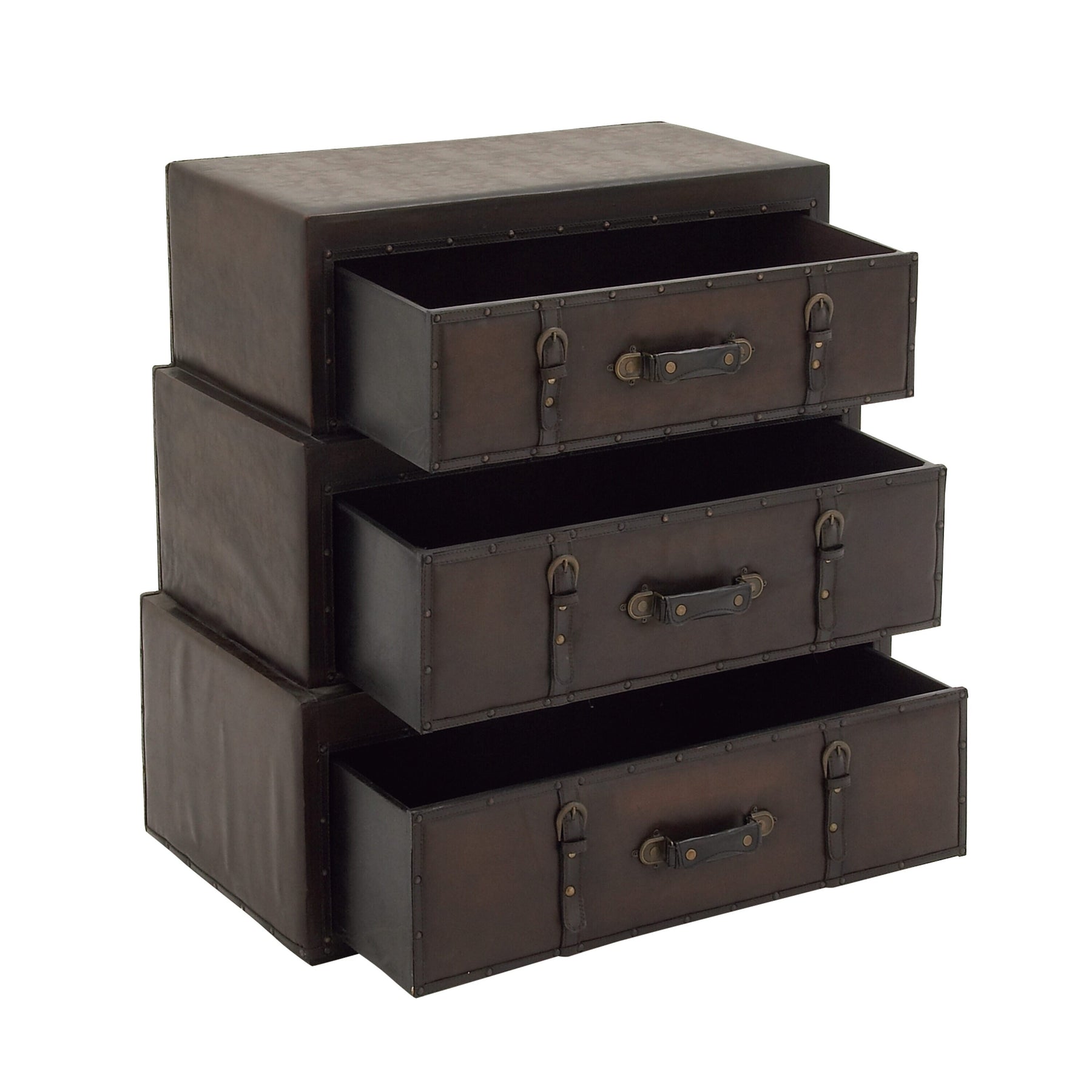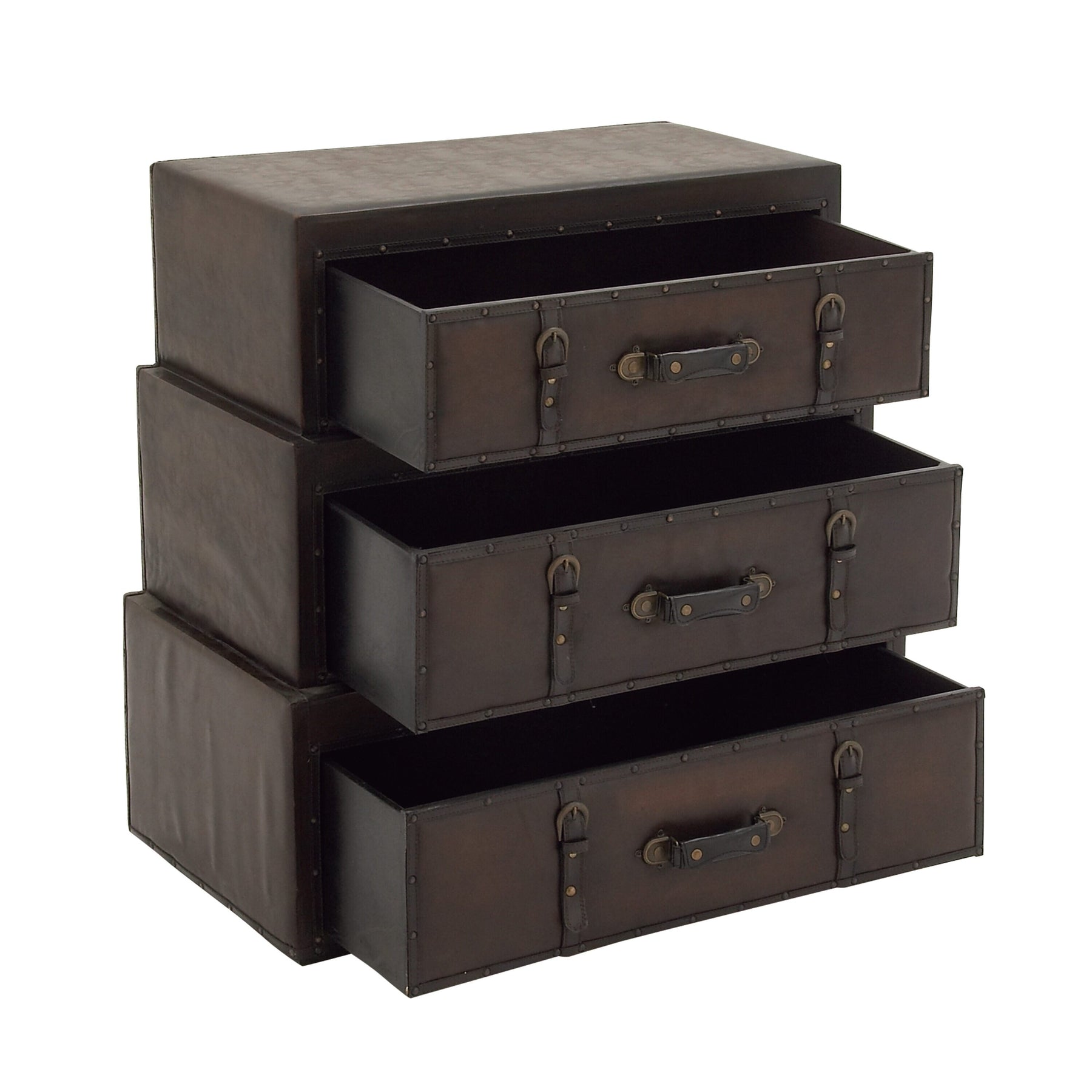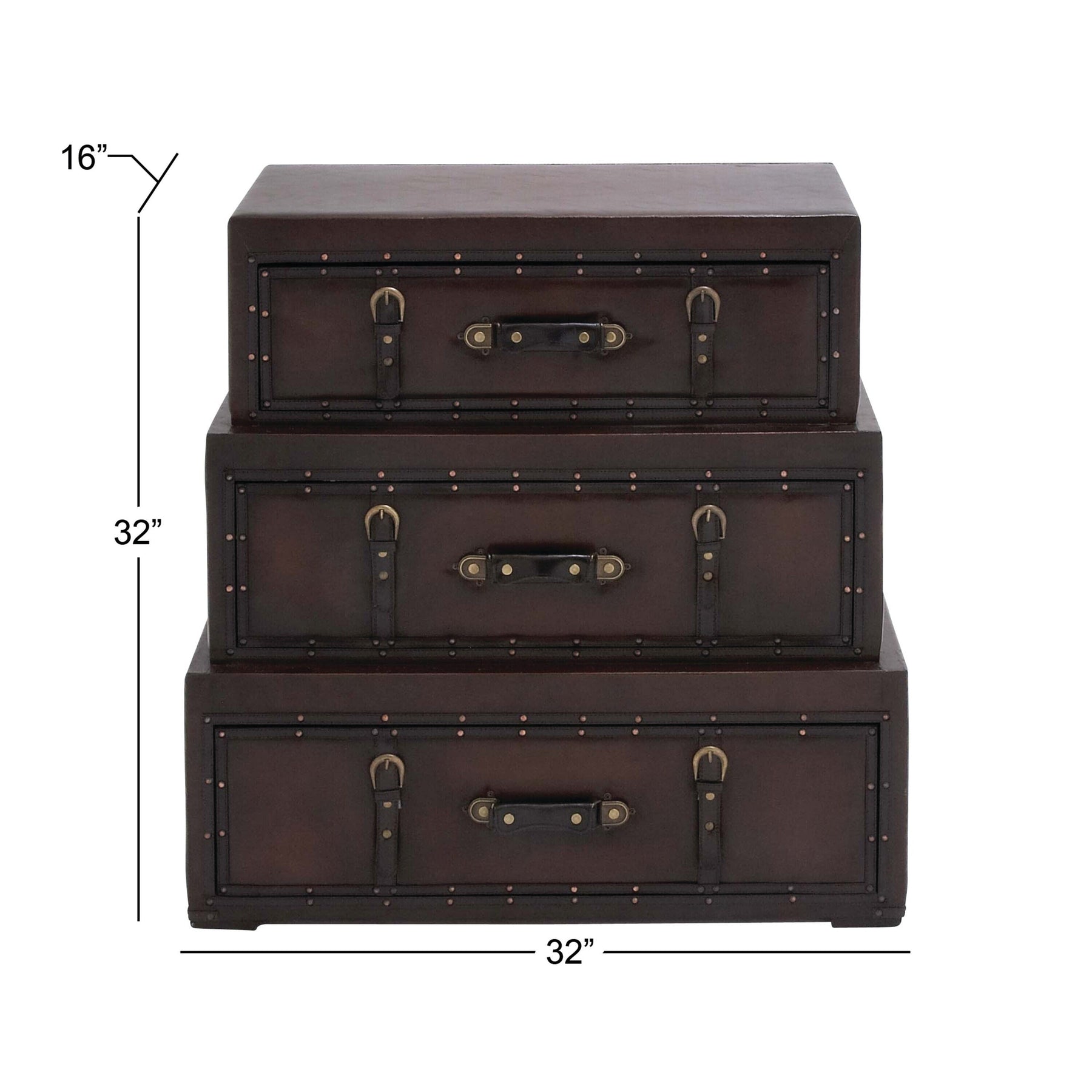 Grayson Lane Brown Vintage Faux Leather 3-Drawer Accent Chest