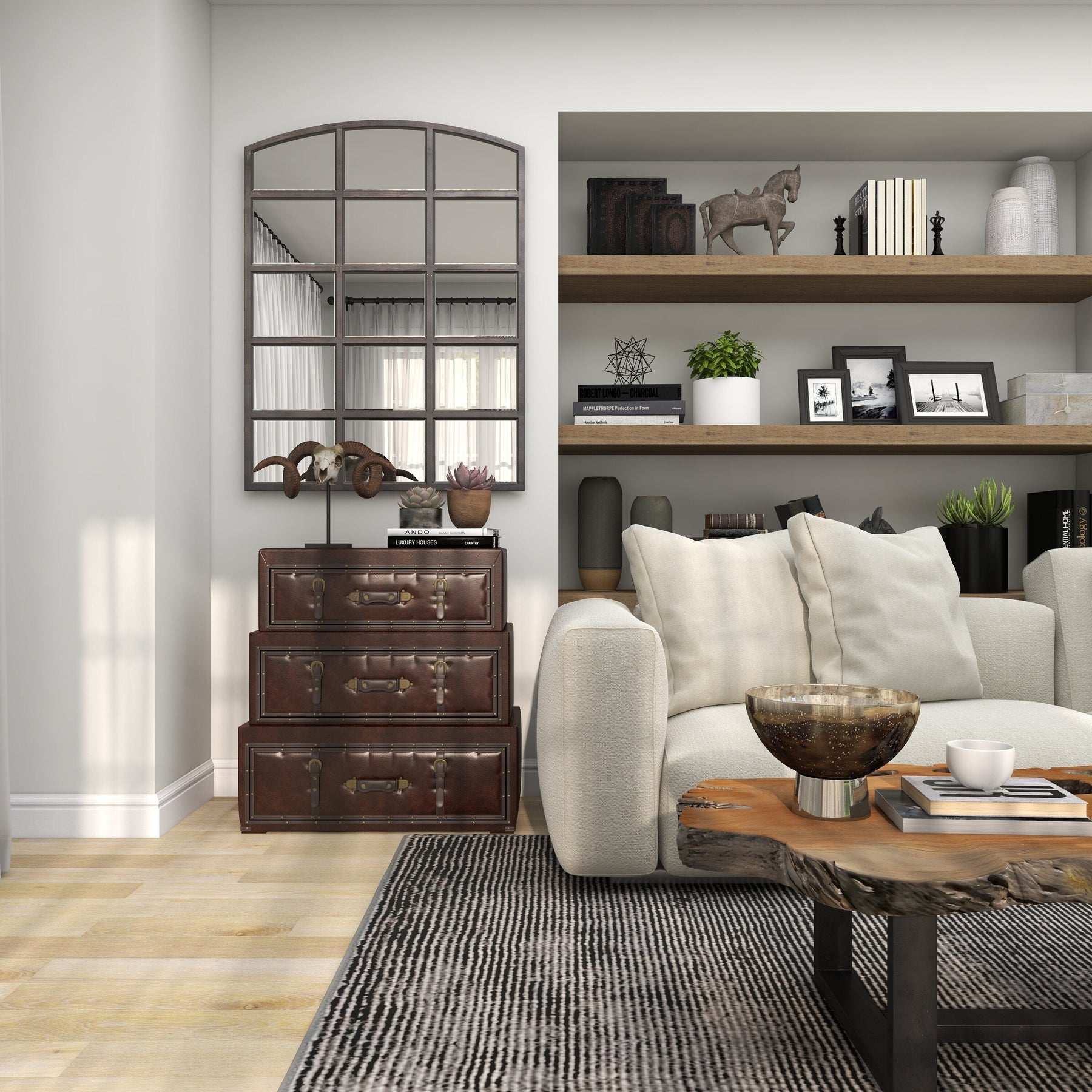 The Grayson Lane Vintage Faux Leather 3-Drawer Accent Chest offers timeless elegance with a traditional design. Skillfully crafted from solid wood and adorned with faux leather, this chest combines style and functionality, providing ample storage with a touch of antique charm.