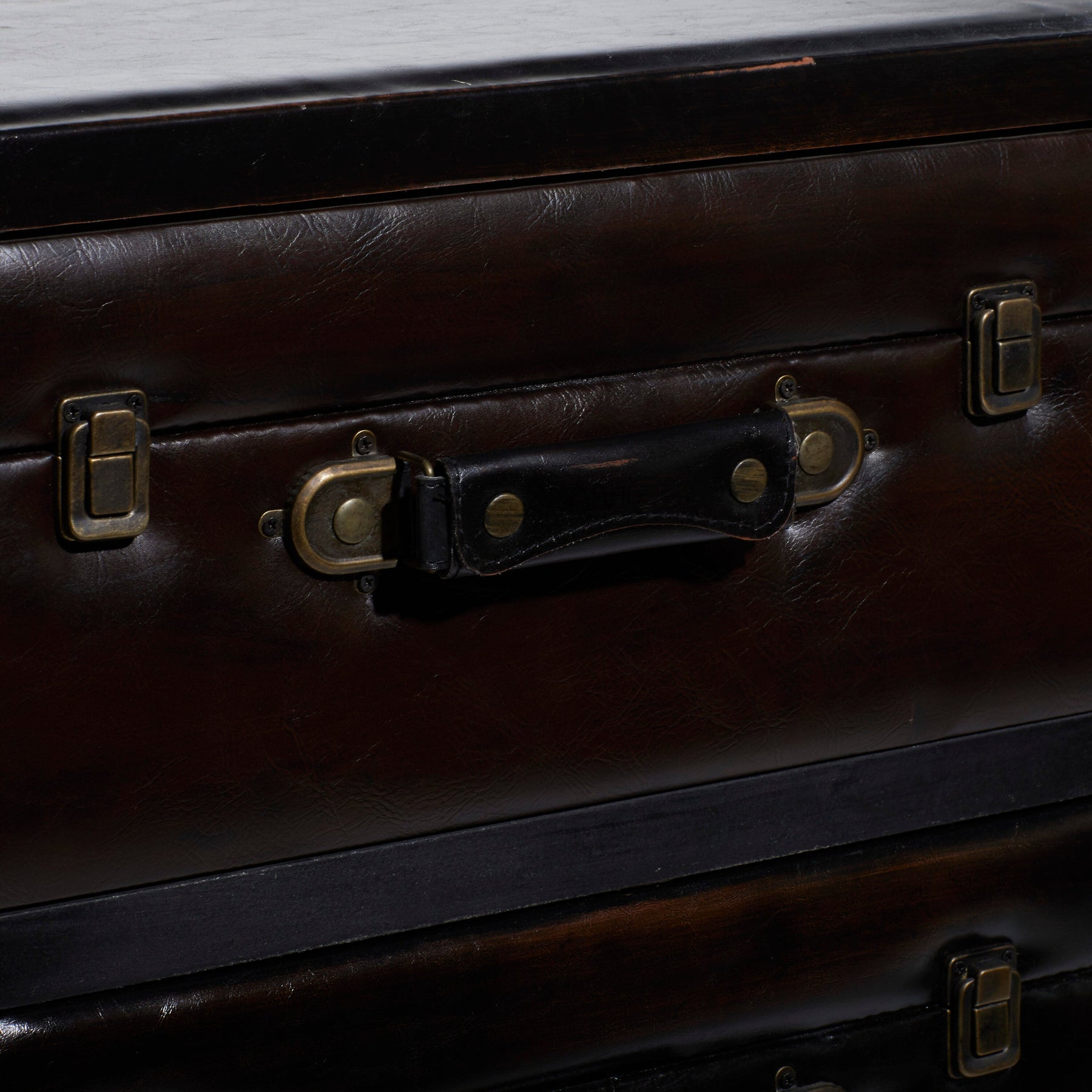 • Design: Vintage inspired luggage drawers with bolted handles and latch locks for an authentic look
