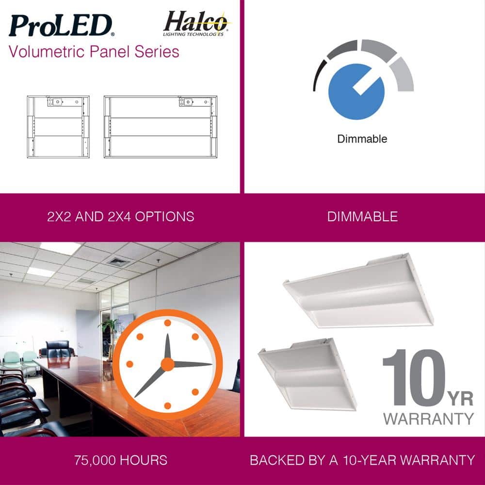 Illuminate your commercial spaces with the HALCO 2x2 ft Volumetric Panel LED Light, delivering exceptional energy efficiency and long-lasting performance. With an equivalent output of 64 watts yet using only 29 watts, this troffer light offers a bright 5000K daylight hue that's perfect for offices, schools, and retail environments. Enjoy consistent, uniform lighting with its direct backlit design, ideal for creating a professional and inviting atmosphere.