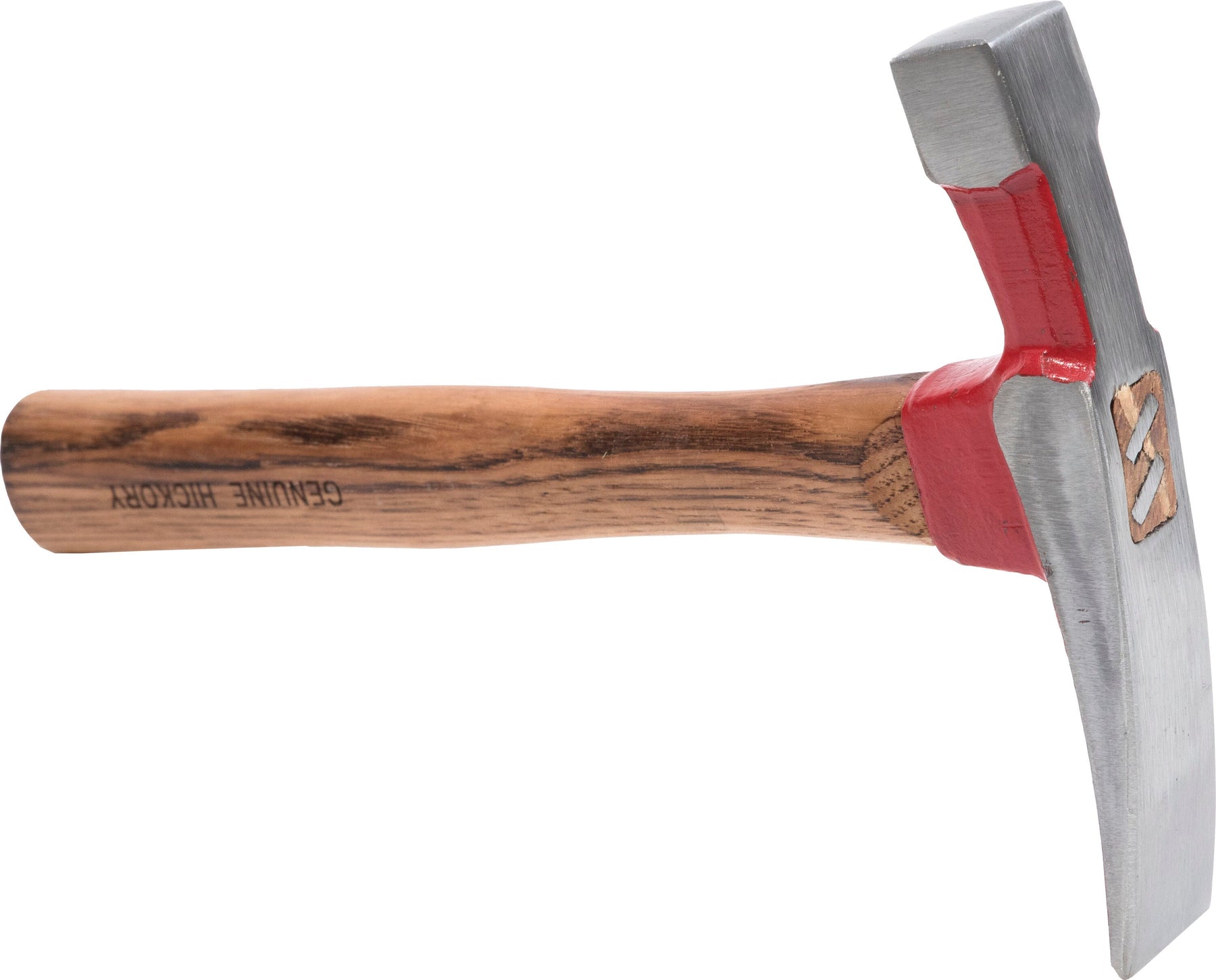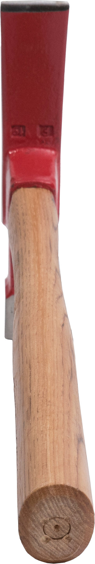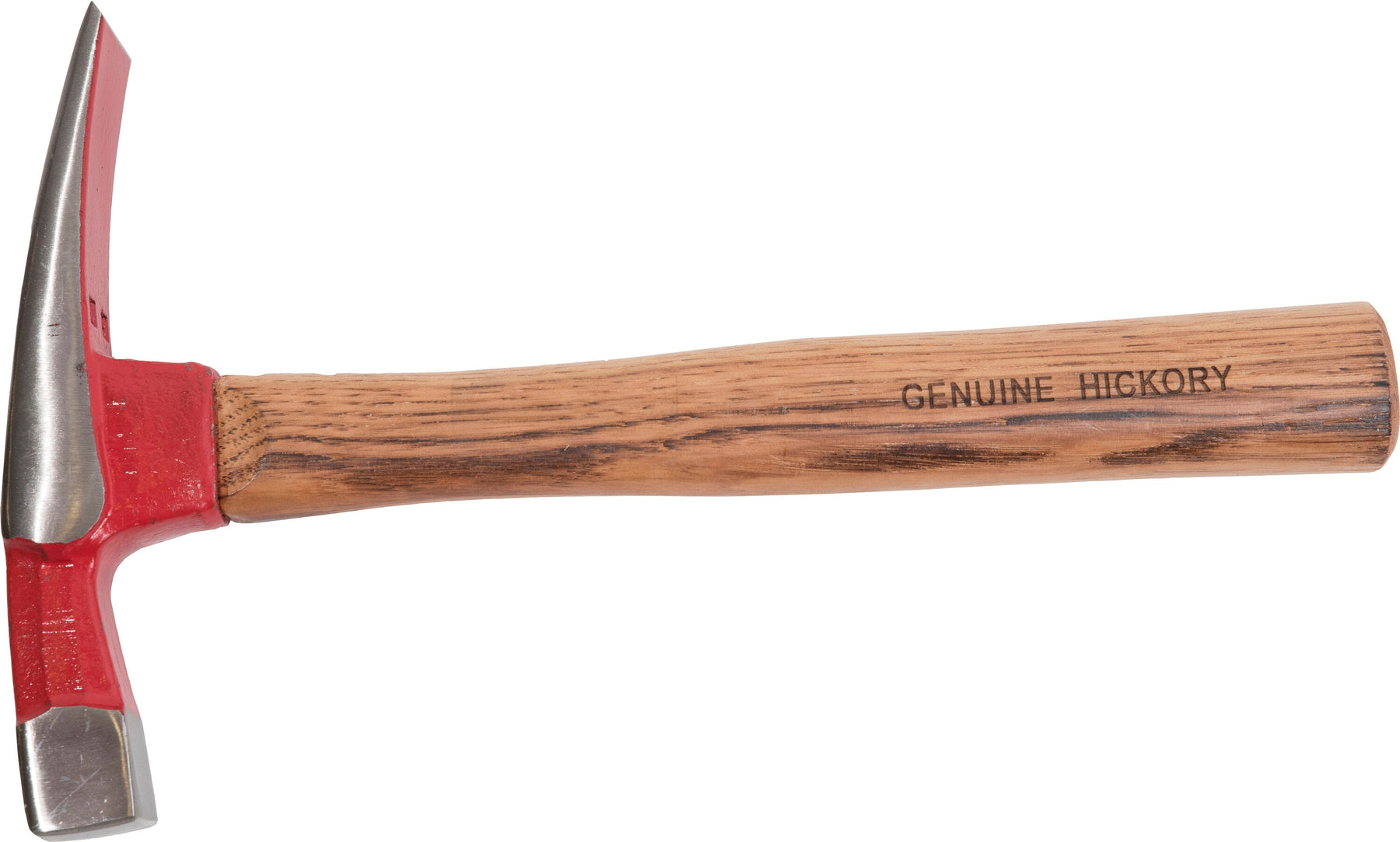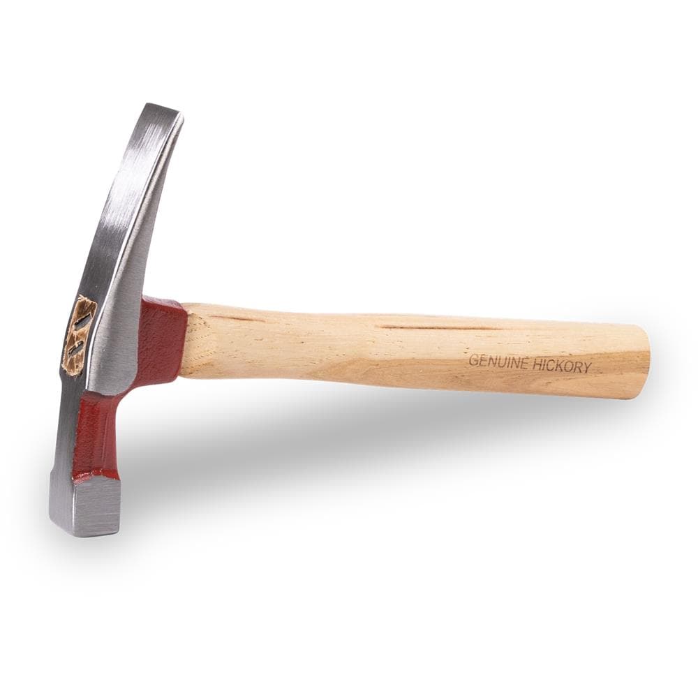 A durable brick specialty hammer designed for masonry work. Drop-forged steel head with milled face pairs with a comfortable genuine hickory wood handle for precise breaking, trimming, and cleaning of brick edges.