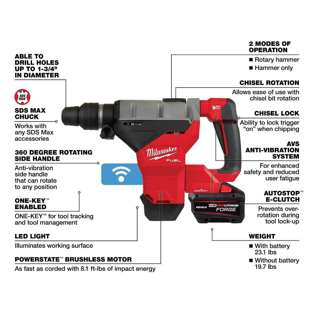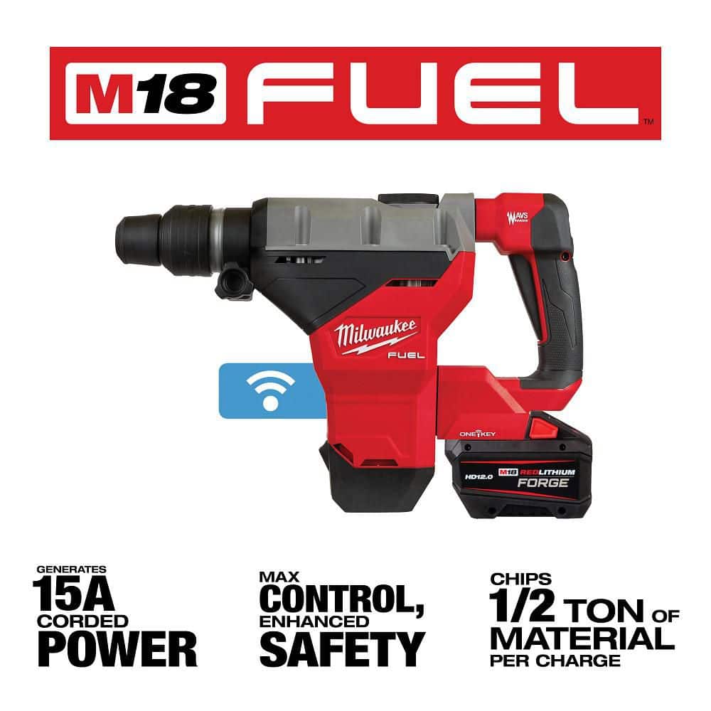 Milwaukee M18 FUEL ONE-KEY 18V Brushless 1-3/4 in. SDS-MAX Rotary Hammer Kit with Two 12.0Ah Batteries (2718-22HD)