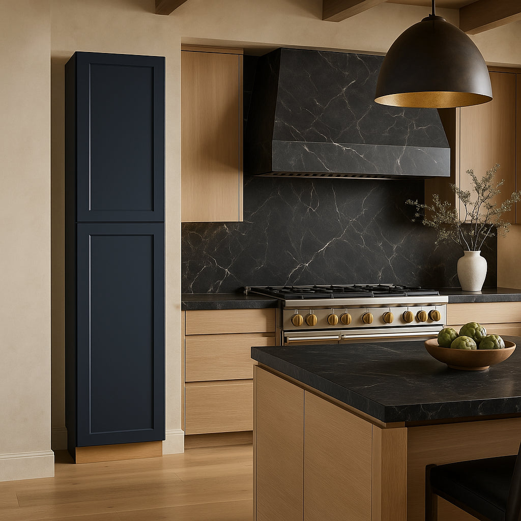 Upgrade your kitchen with the Hampton Bay Avondale Shaker Pantry Cabinet in Ink Blue today!