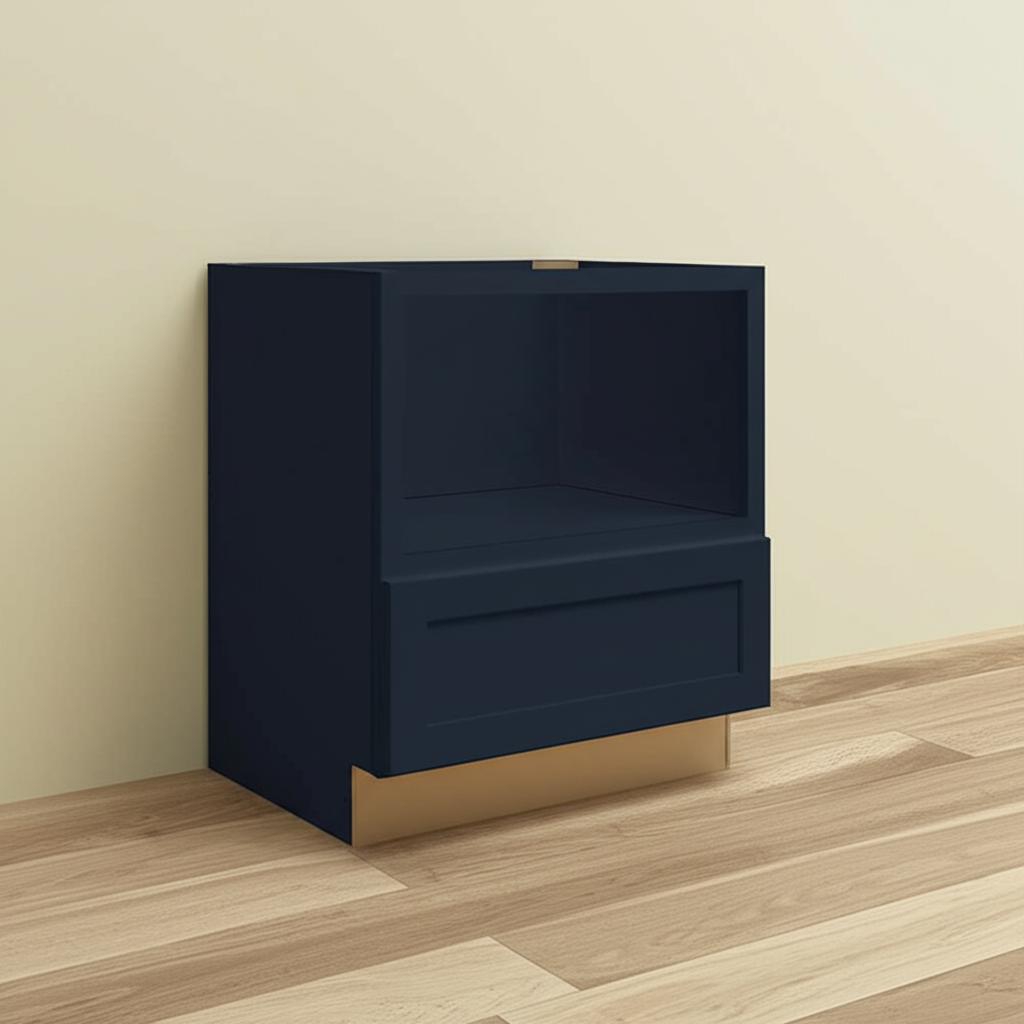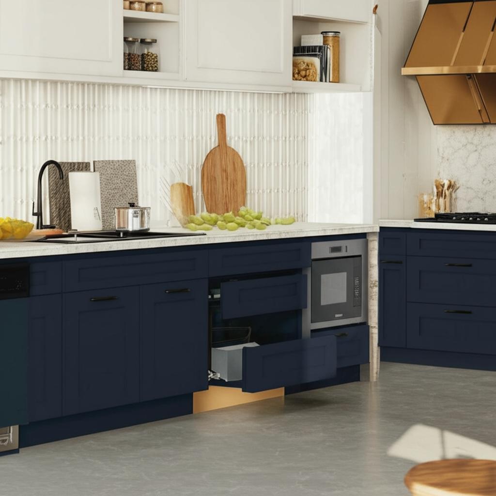 Upgrade your kitchen today with the Hampton Bay Avondale Shaker Microwave Base Cabinet in Ink Blue, where style meets functionality.