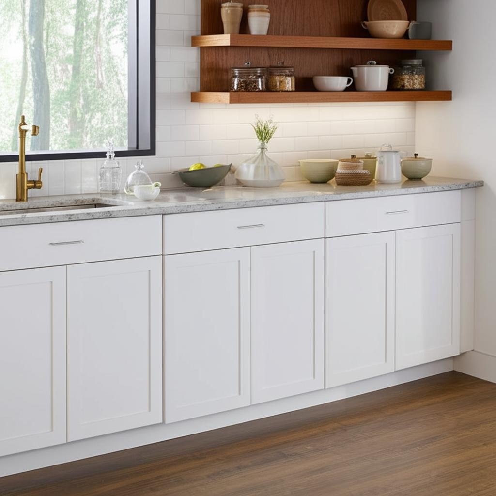 - Timeless Design: Shaker-style doors with a painted alpine white finish.