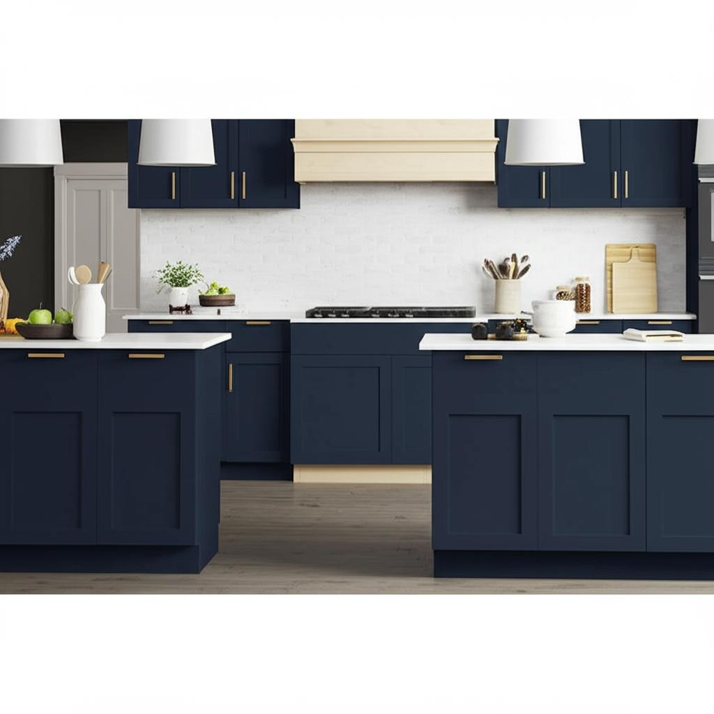 • Elegant Design: Shaker-style doors with a premium ink blue finish for a classic look.