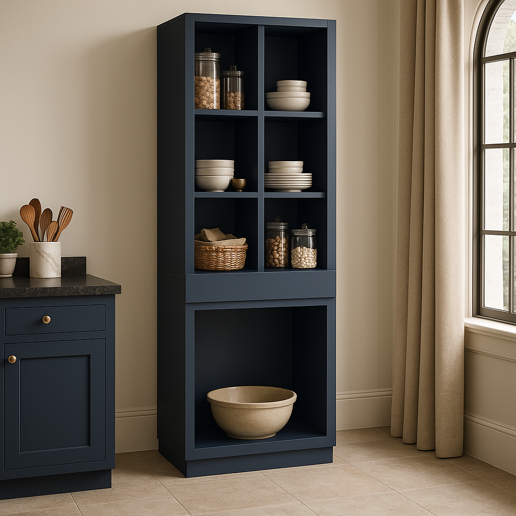 The Hampton Bay Avondale Shaker Pantry Cabinet in Ink Blue combines modern design with practical functionality. Featuring durable plywood construction and a premium painted finish, this cabinet offers adjustable shelves and soft-close doors for a seamless kitchen experience.
