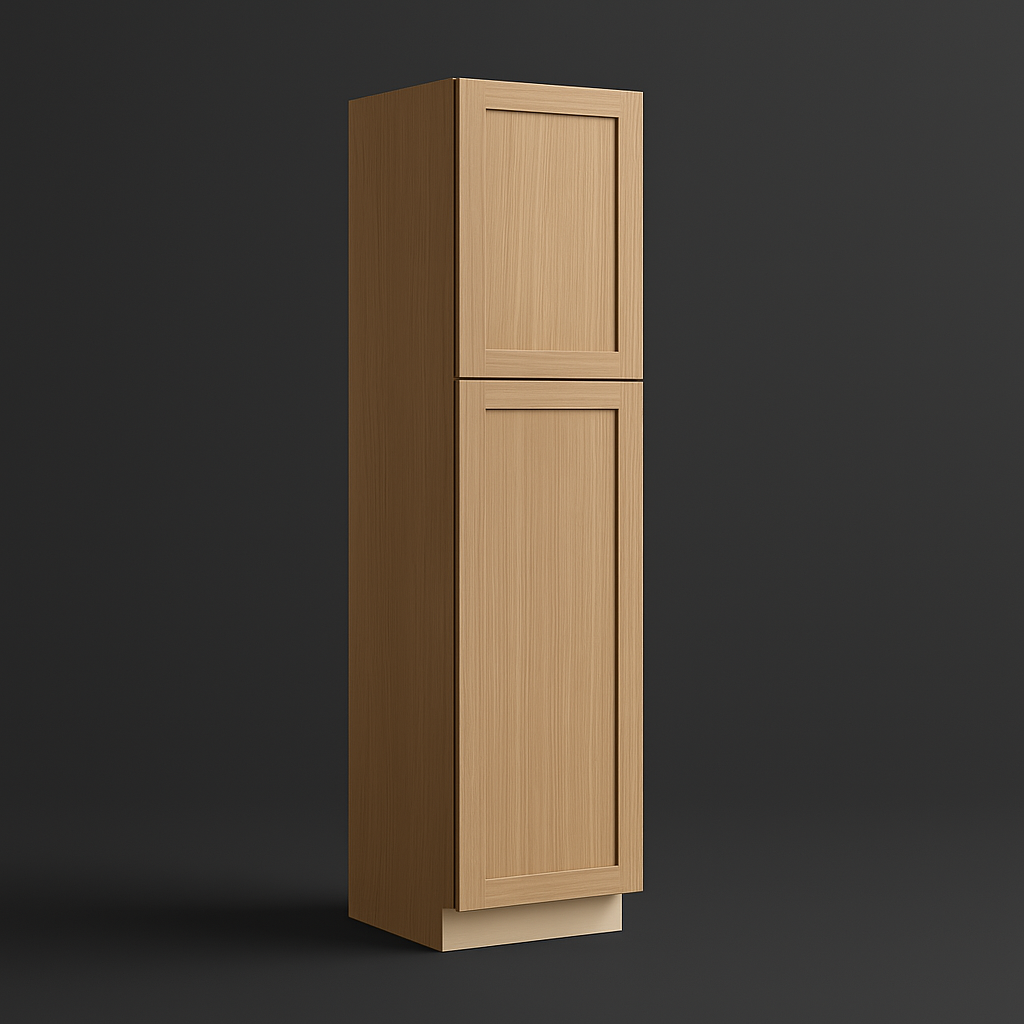 The Hampton Bay Avondale Shaker Pantry Cabinet combines modern design with practical functionality. Featuring durable plywood construction and a white oak finish, it offers adjustable shelves and soft-close doors for a seamless kitchen experience.