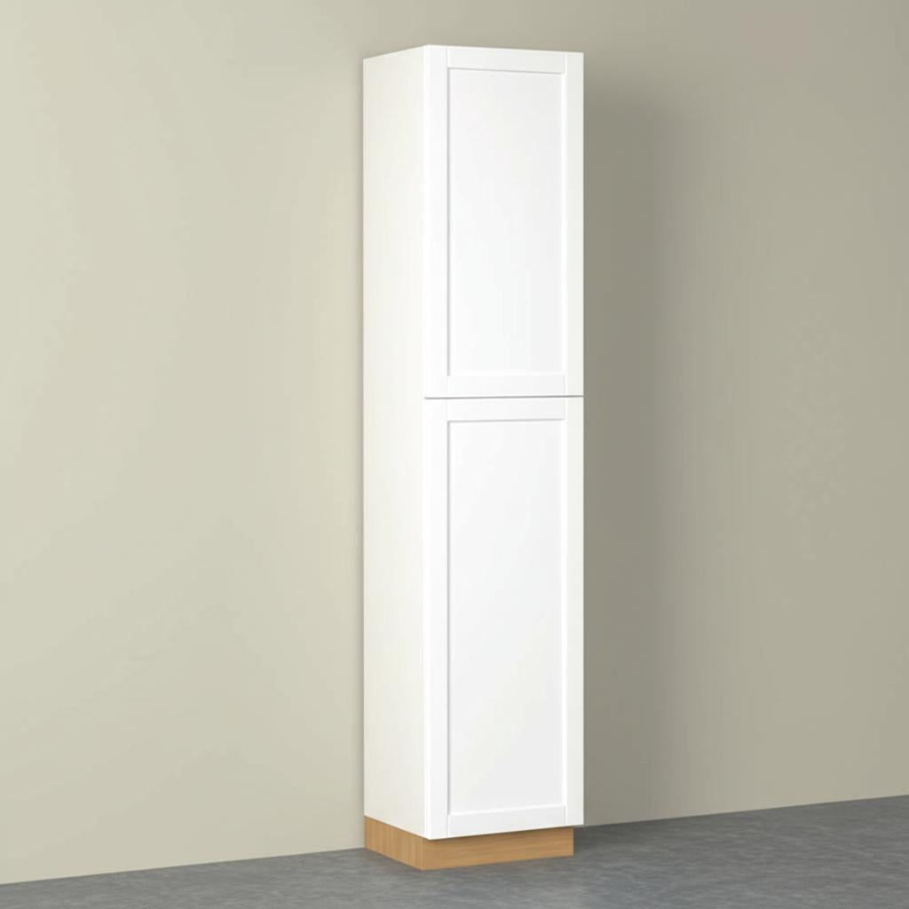Transform your kitchen into a masterpiece with the Cambridge White Shaker Pantry Cabinet. Its clean shaker-style doors and brilliant white finish create a bright and inviting atmosphere, perfect for modern or transitional decor. Pair it with contrasting countertops for a designer-approved look. This cabinet is not just storage; it's a statement of refined taste and functionality.