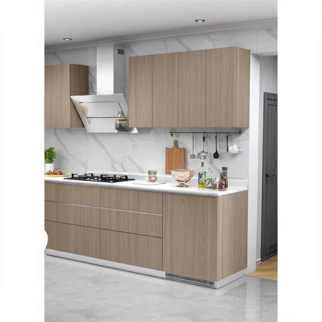 - Durable Finish: Features a rigid thermofoil surface mimicking exotic wood grain, resistant to water and wear.