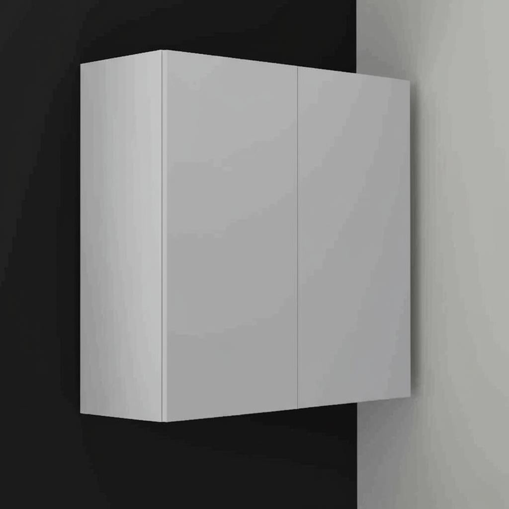 A: The cabinet is constructed from a durable furniture board with a laminated thermofoil finish, making it water-resistant.