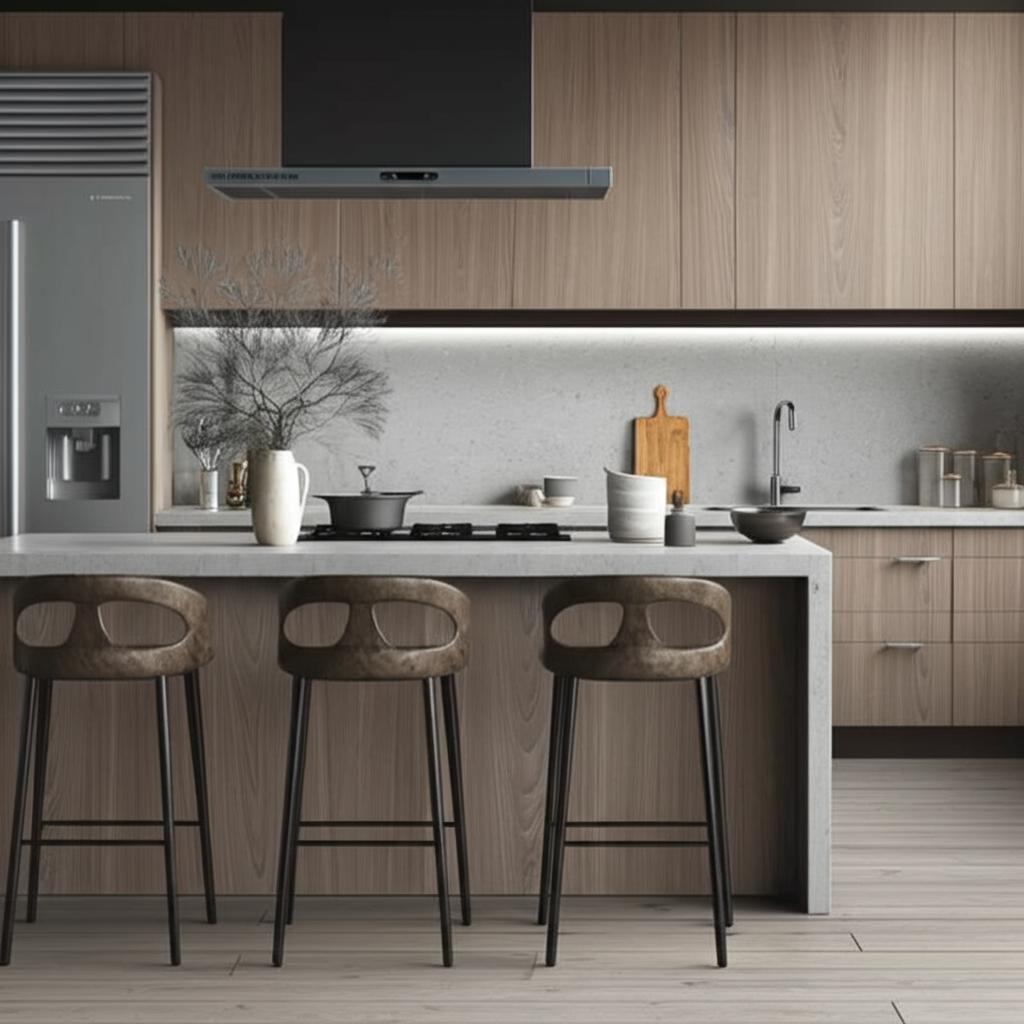 • Modern Style: Features a contemporary slab door design with exotic wood-grain appeal.