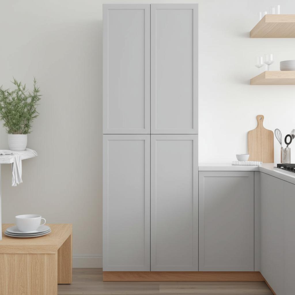 Upgrade your kitchen with the Hampton Bay Designer Series Pantry Cabinet in Heron Gray and experience sophisticated storage solutions today.