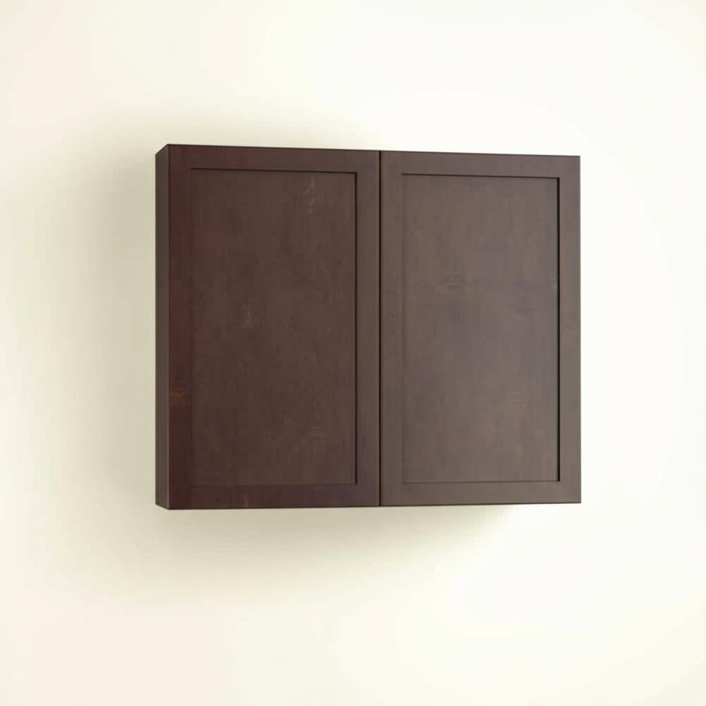 Transform your kitchen into a haven of sophistication with the Hampton Bay Designer Series Soleste Wall Kitchen Cabinet. Its rich Spice finish and sleek Shaker-style doors create a warm and inviting atmosphere, perfect for pairing with contrasting marble countertops. This cabinet is not just a storage solution but a statement piece that defines luxurious living.