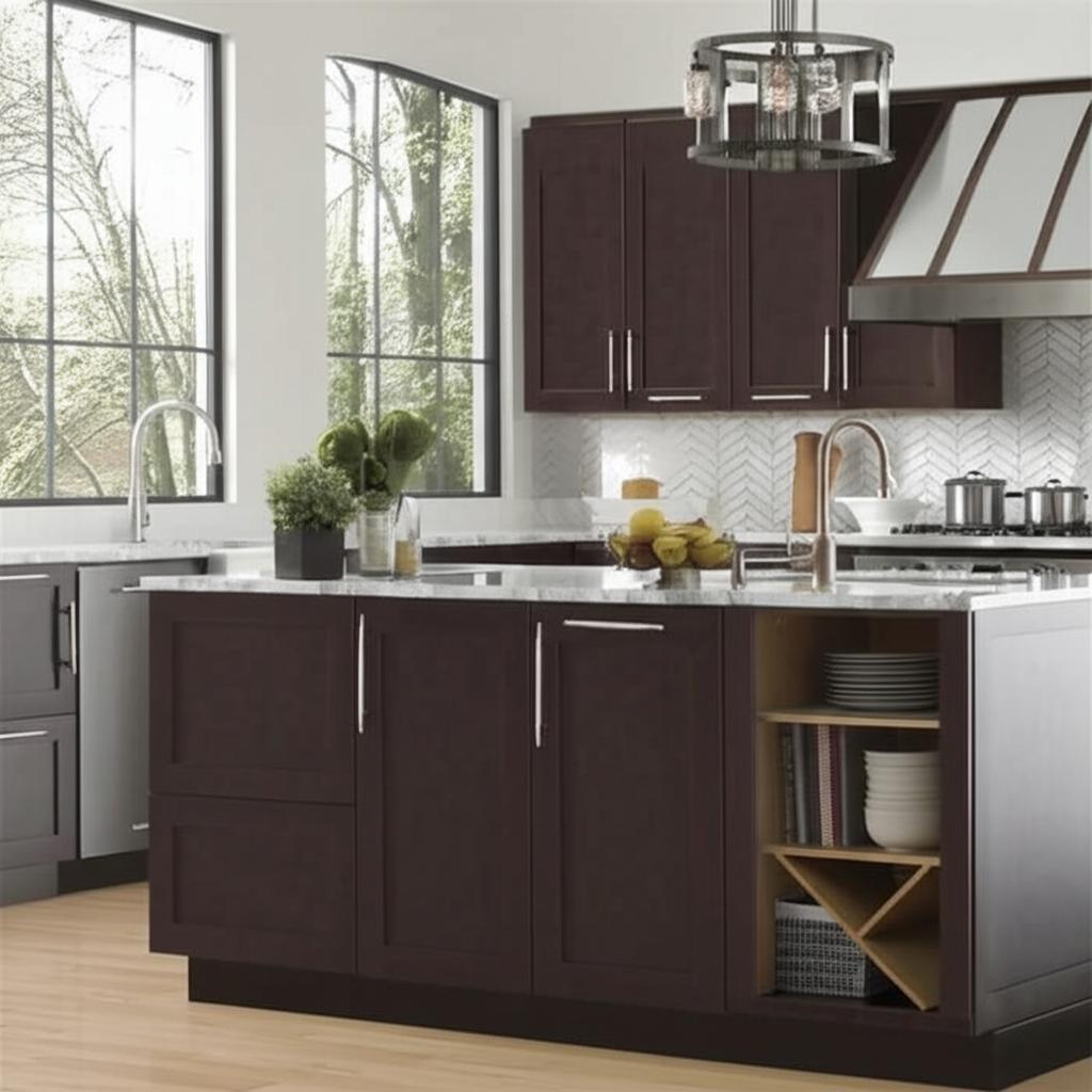 • Shaker Style Doors: Features a full overlay door in an elegant dusk finish for modern appeal.