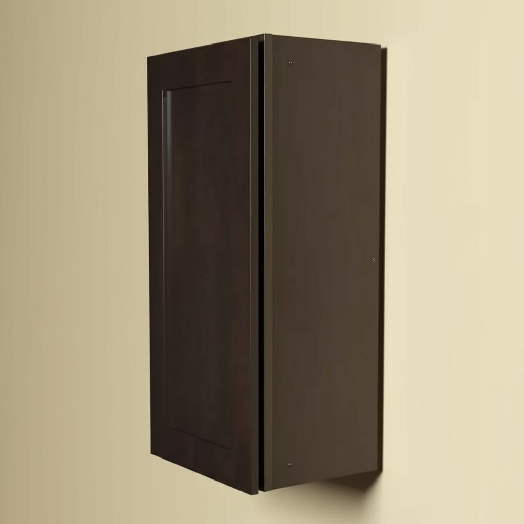 Transform your space with the Hampton Bay Edson Shaker Wall Cabinet in Dusk. Its sleek shaker design and rich brown finish create a warm and inviting atmosphere, perfect for modern or transitional interiors. Style it in a kitchen with complementary tones or use it in a bathroom for a sophisticated storage solution. This cabinet is a testament to refined craftsmanship and versatile design, making it a must-have for luxurious living.