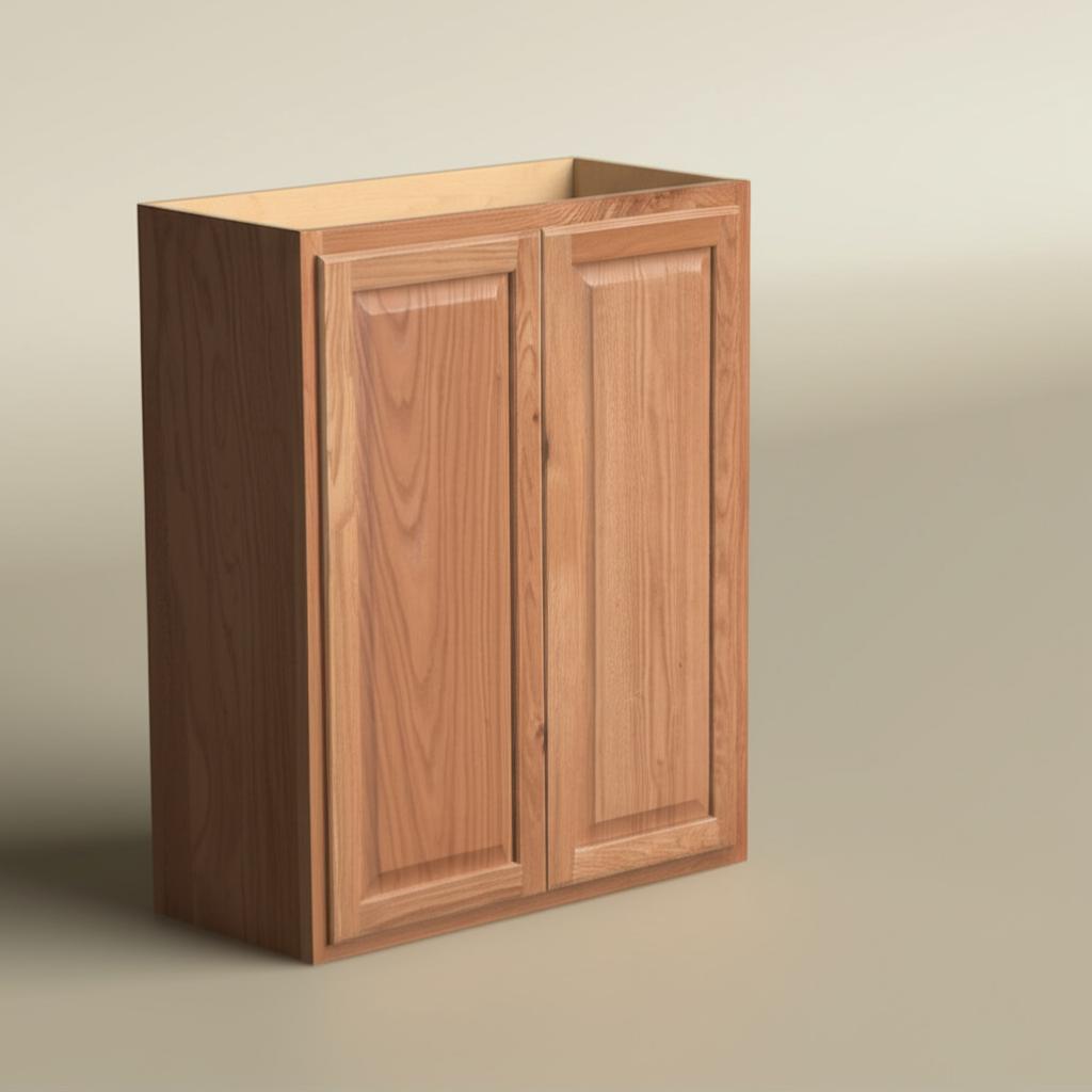 Elevate your kitchen's ambiance with the Hampton Bay Medium Oak Wall Kitchen Cabinet. Its raised panel doors and warm oak finish create a sophisticated yet inviting atmosphere. Style it with stainless steel appliances and neutral tones for a balanced, modern look. This cabinet is not just storage; it's a statement piece that defines luxurious living.