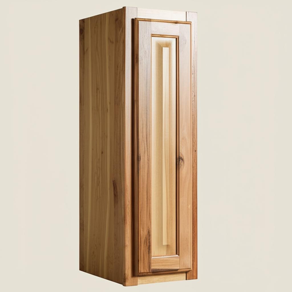 The Hampton Bay Natural Hickory Wall Kitchen Cabinet combines rustic charm with practical functionality. Featuring durable composite construction and solid hickory doors, it offers adjustable shelves and reversible door handing for versatile storage and easy installation.
