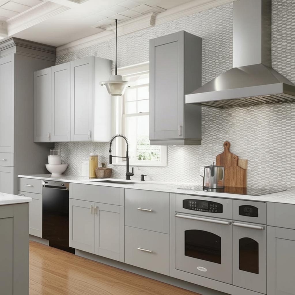 Upgrade your kitchen with the Hampton Bay Dove Gray Shaker Cabinet—order now for a stylish and practical addition to your home.