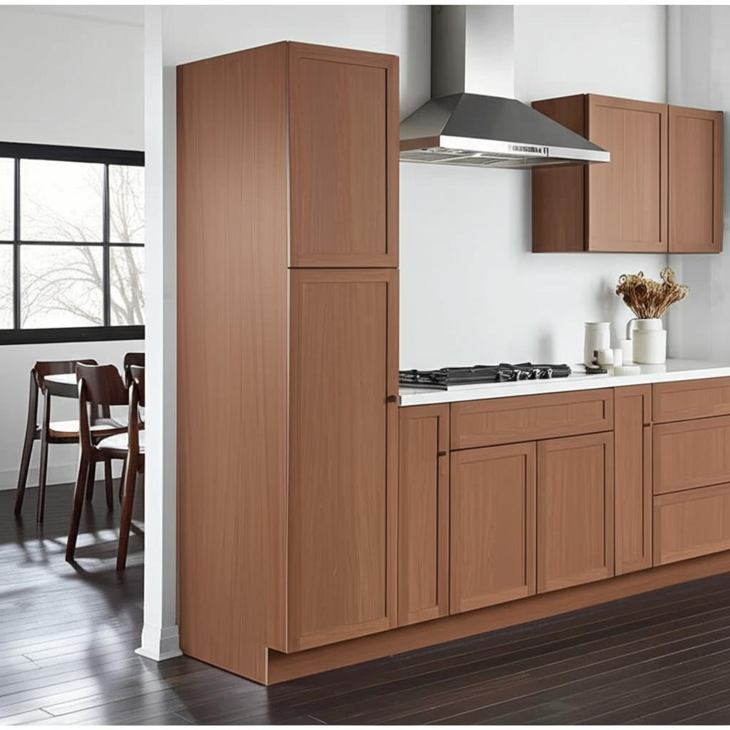 • Elegant Design: Shaker style with a Saddle Oak finish for a classic look.
