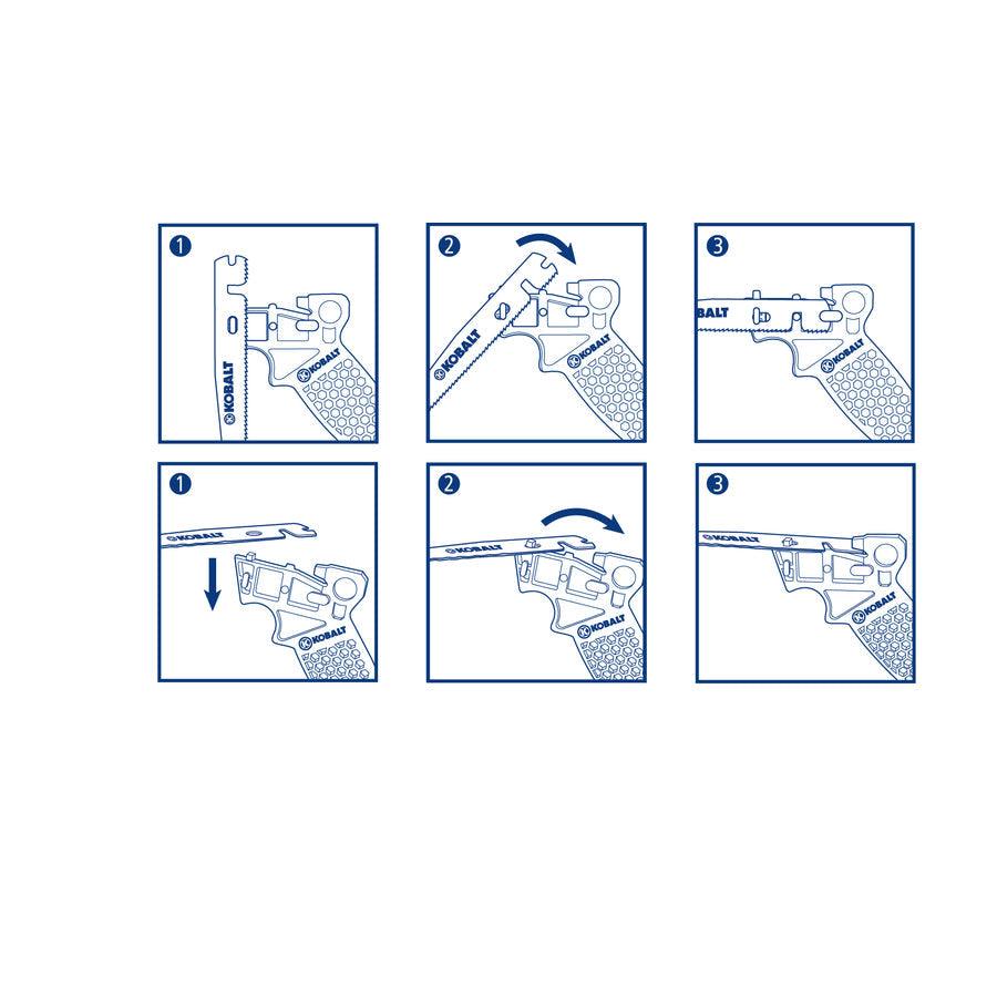 Lightweight aluminum quick change handle with silver metallic painting 2pc alloy tool steel blades for both metal and wood cutting Blades locked both horizontally and vertically Total 4 blade positions for multiple uses