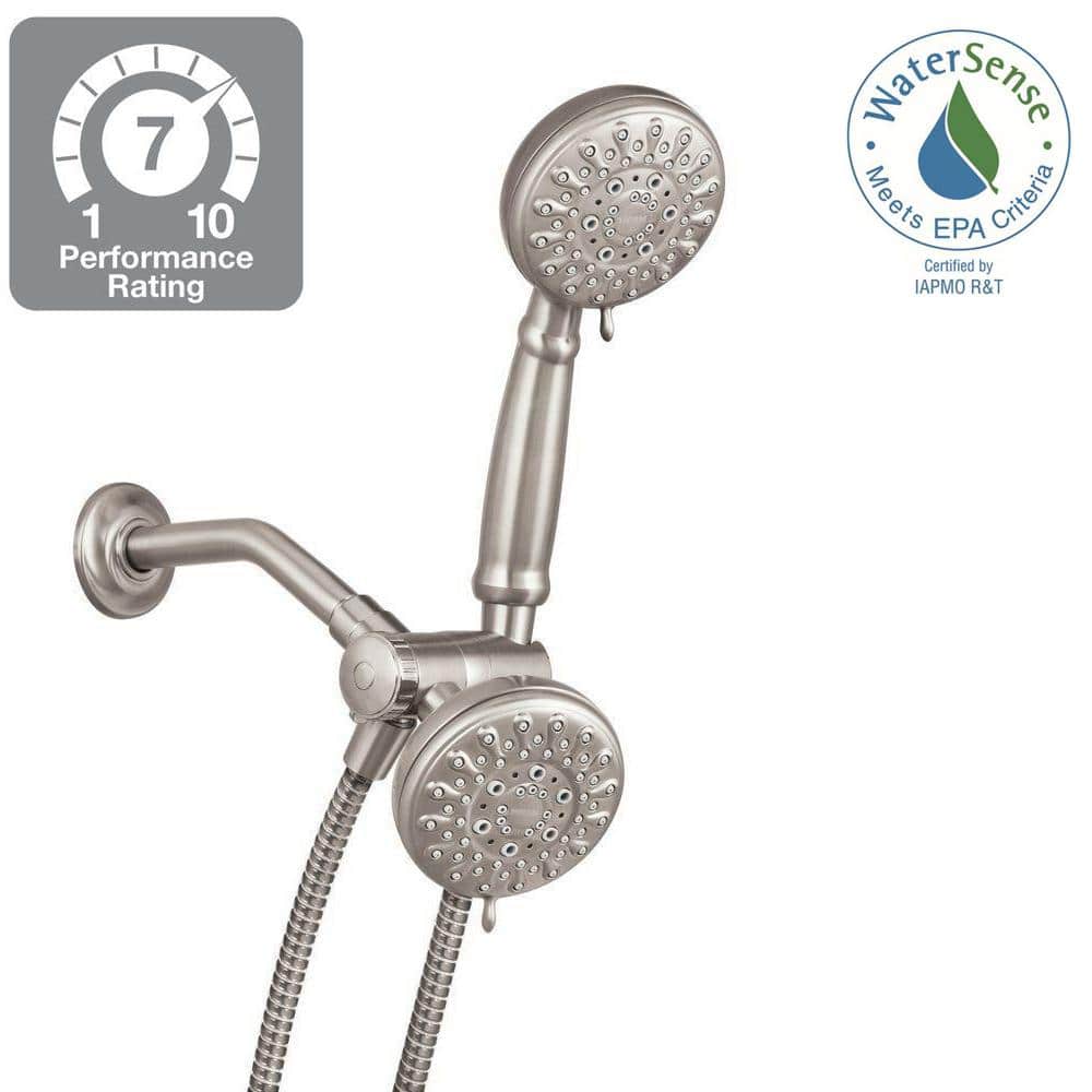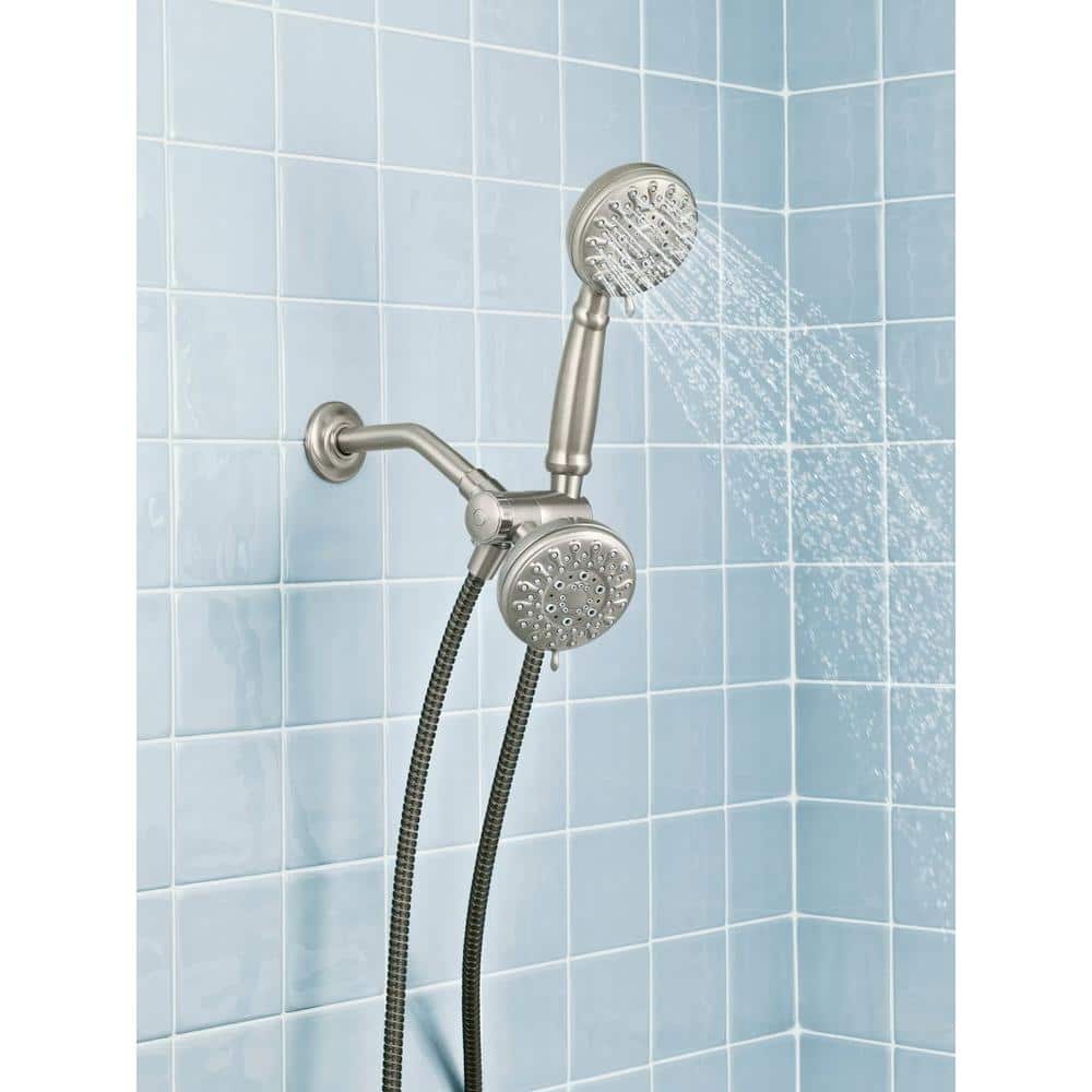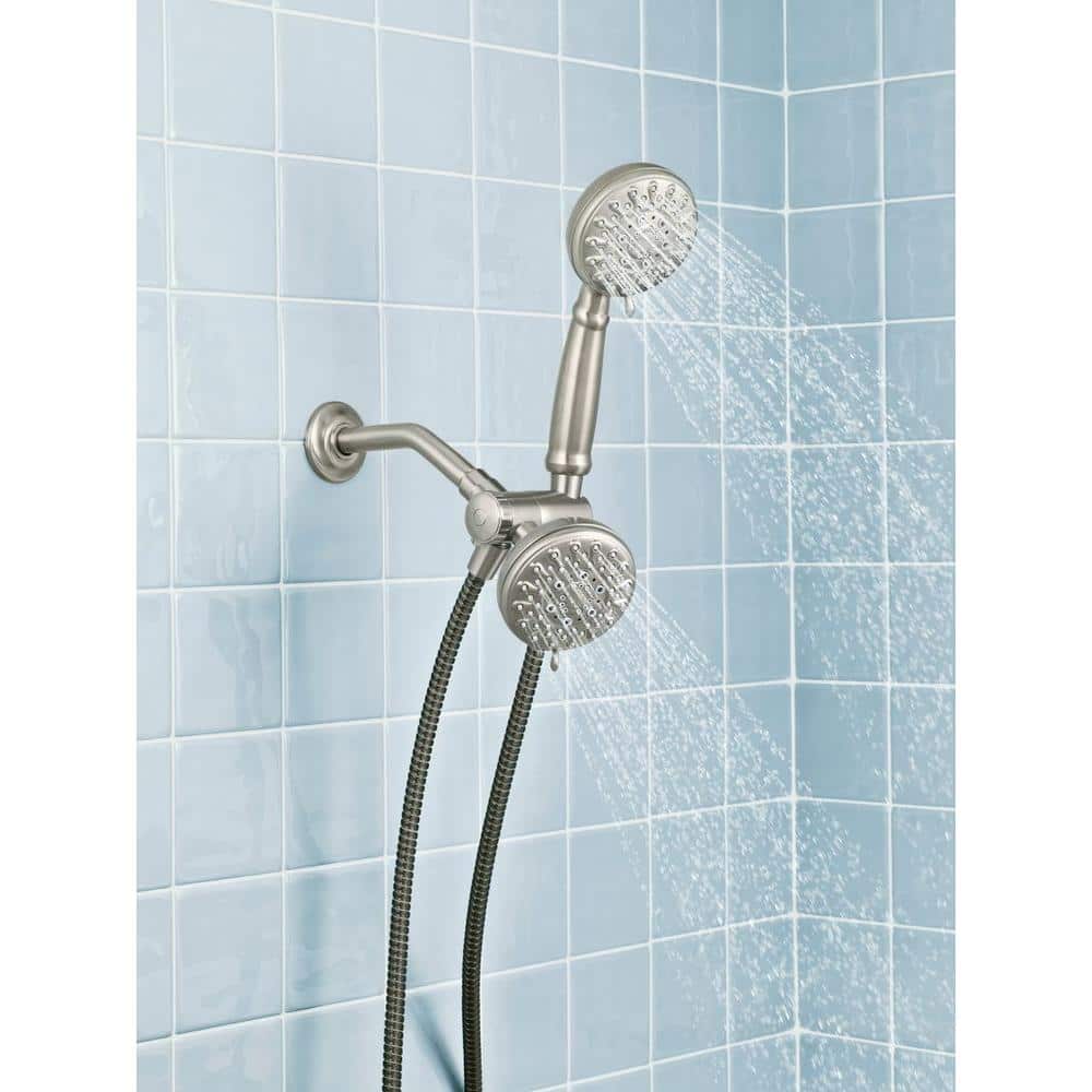 Enjoy flexible, spa-like showers with Moen’s Banbury dual shower system featuring a 4-inch fixed head plus handheld. The Spot Resist Brushed Nickel finish stays cleaner, while five spray settings and self-cleaning nozzles deliver reliable performance.