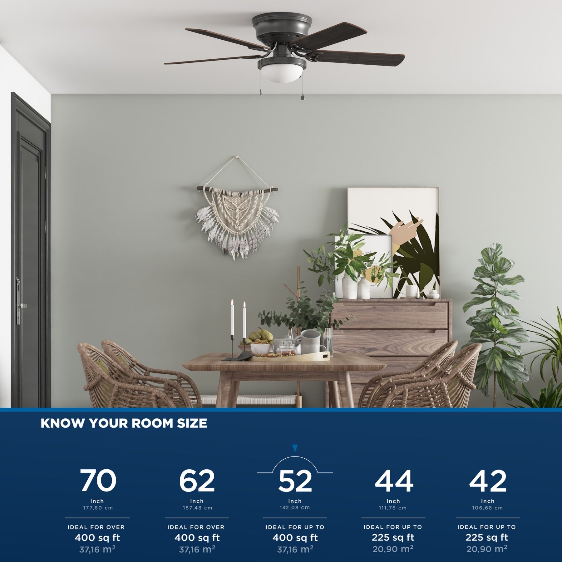 • Low-Profile Flush Mount: Maximizes headroom while providing broad 52-in airflow coverage