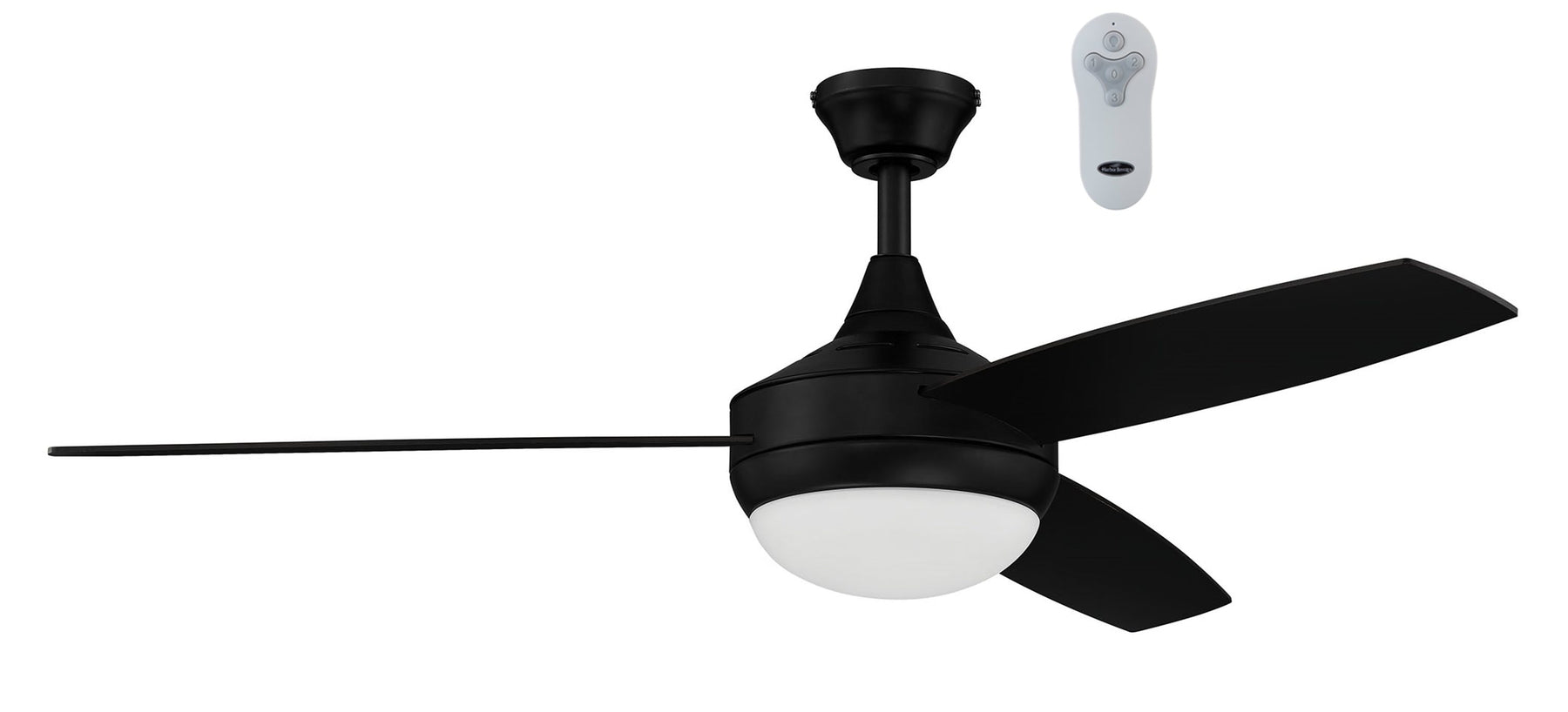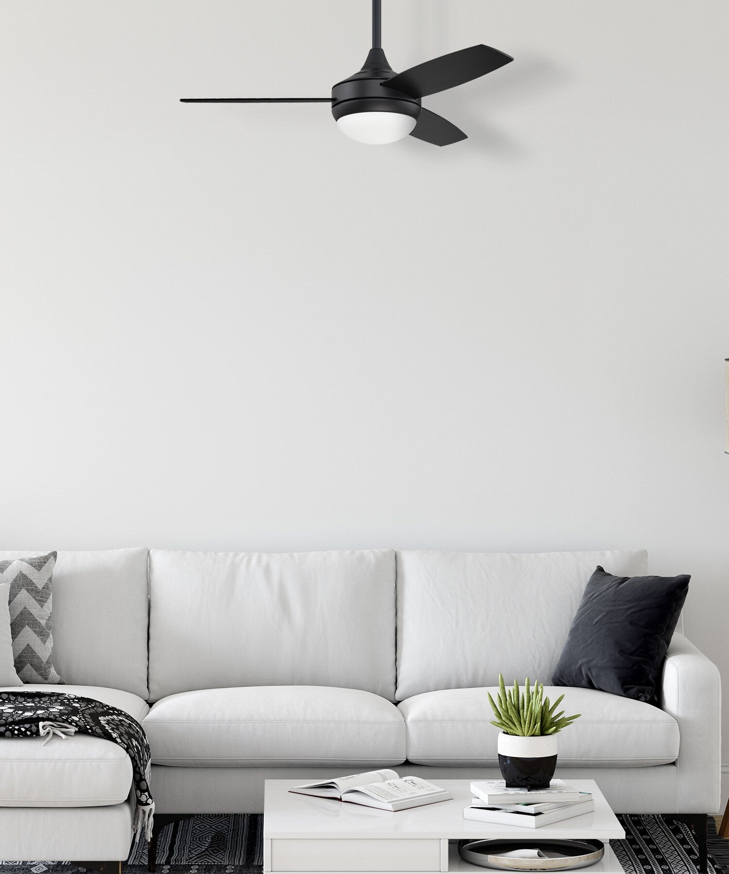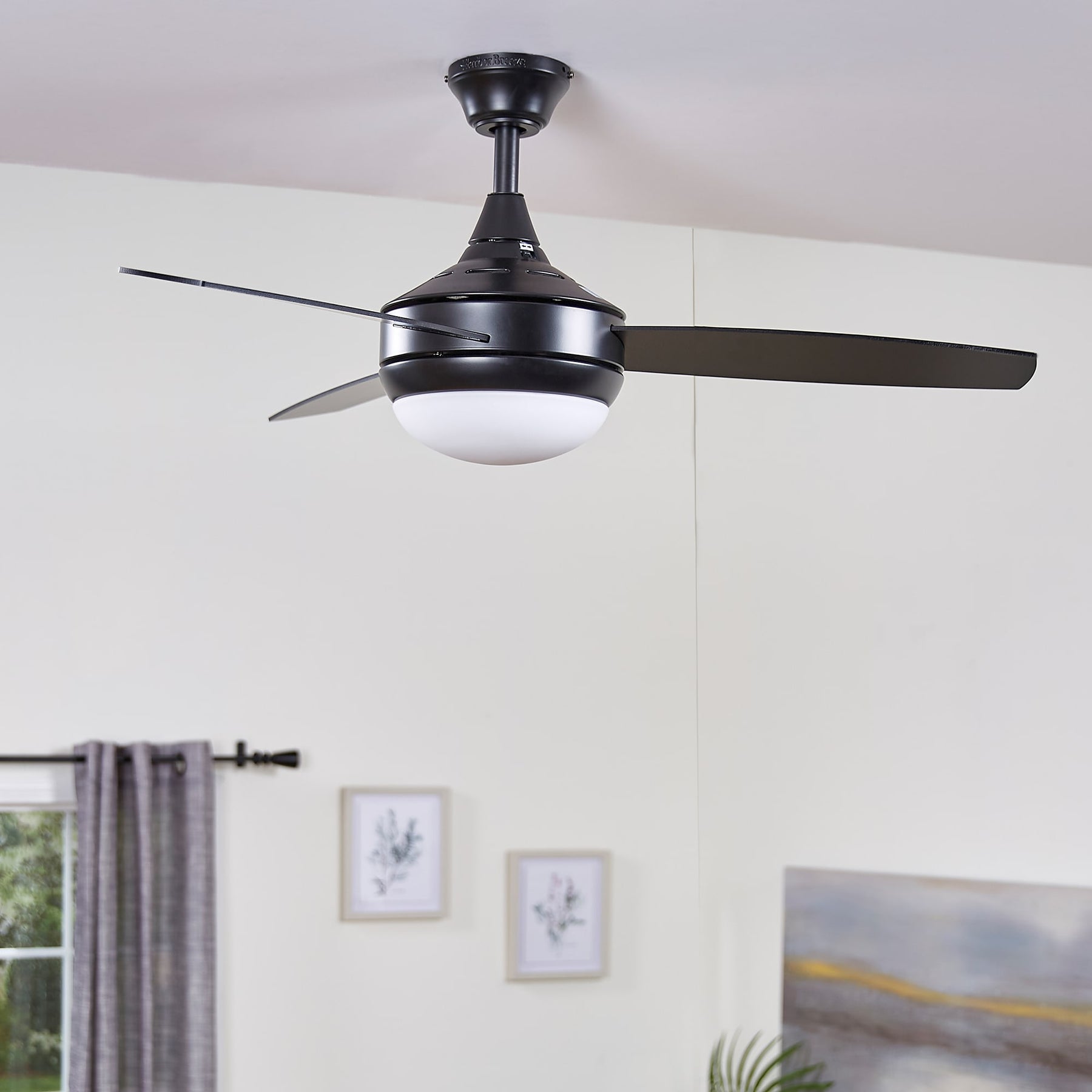 A compact, modern 44-inch indoor ceiling fan that pairs a matte black finish with an integrated LED light. The 3-blade design and included remote deliver efficient airflow and easy control for small rooms.