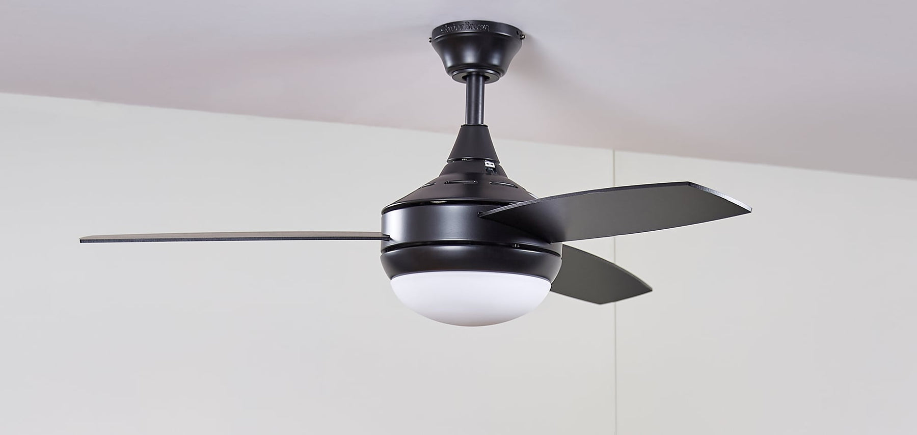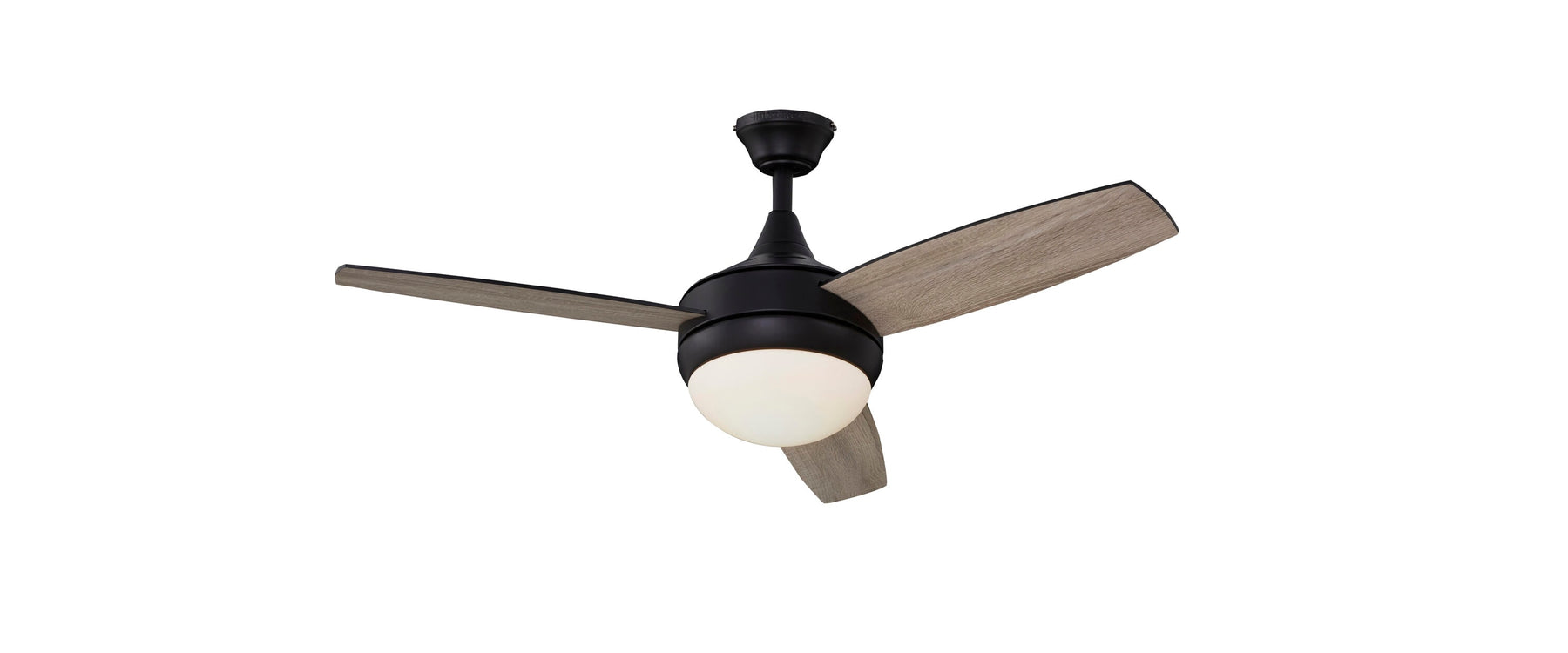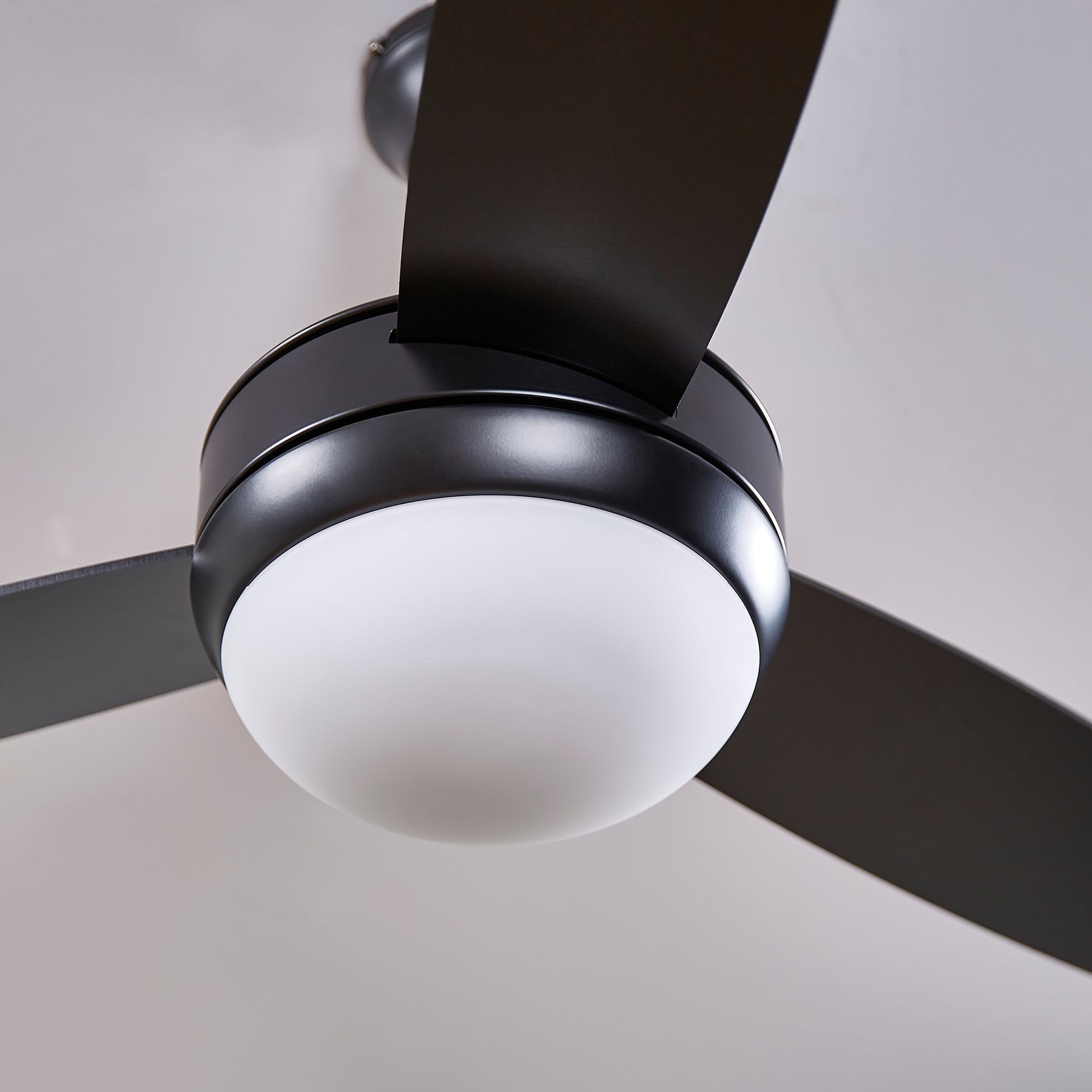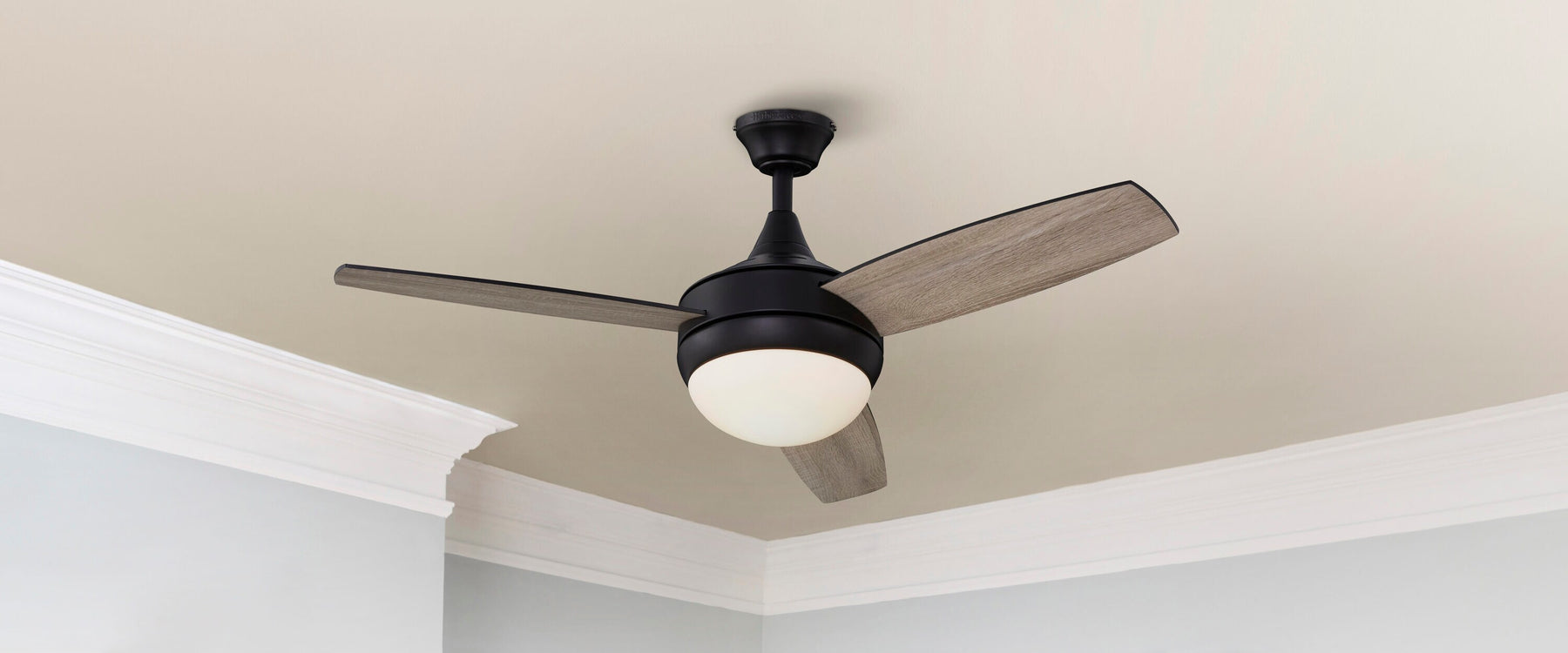 A compact, modern 44-inch indoor ceiling fan that pairs a matte black finish with an integrated LED light. The 3-blade design and included remote deliver efficient airflow and easy control for small rooms.