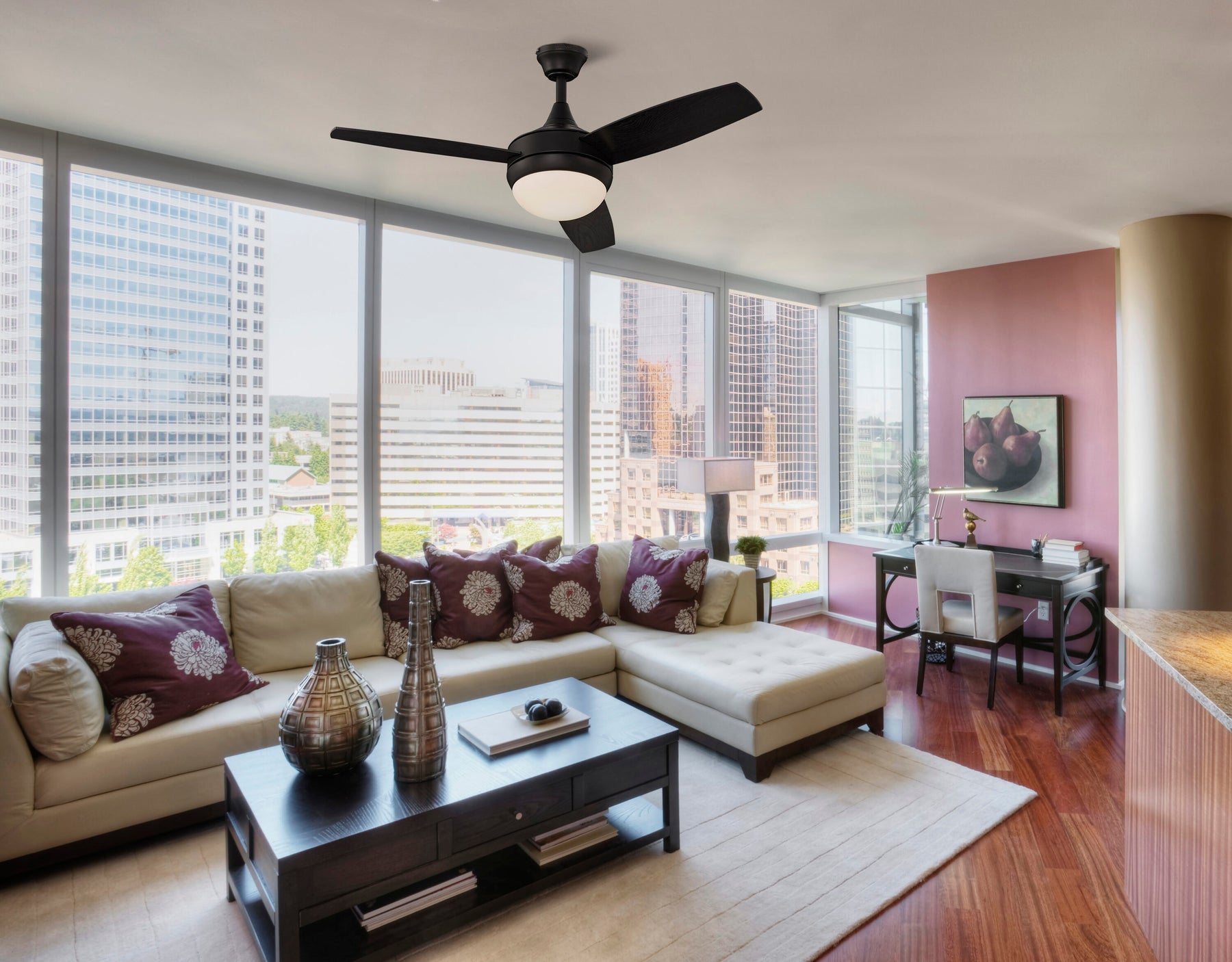 - Space-Saving Performance: 44-in diameter ideal for small rooms; up to 3437 CFM on high