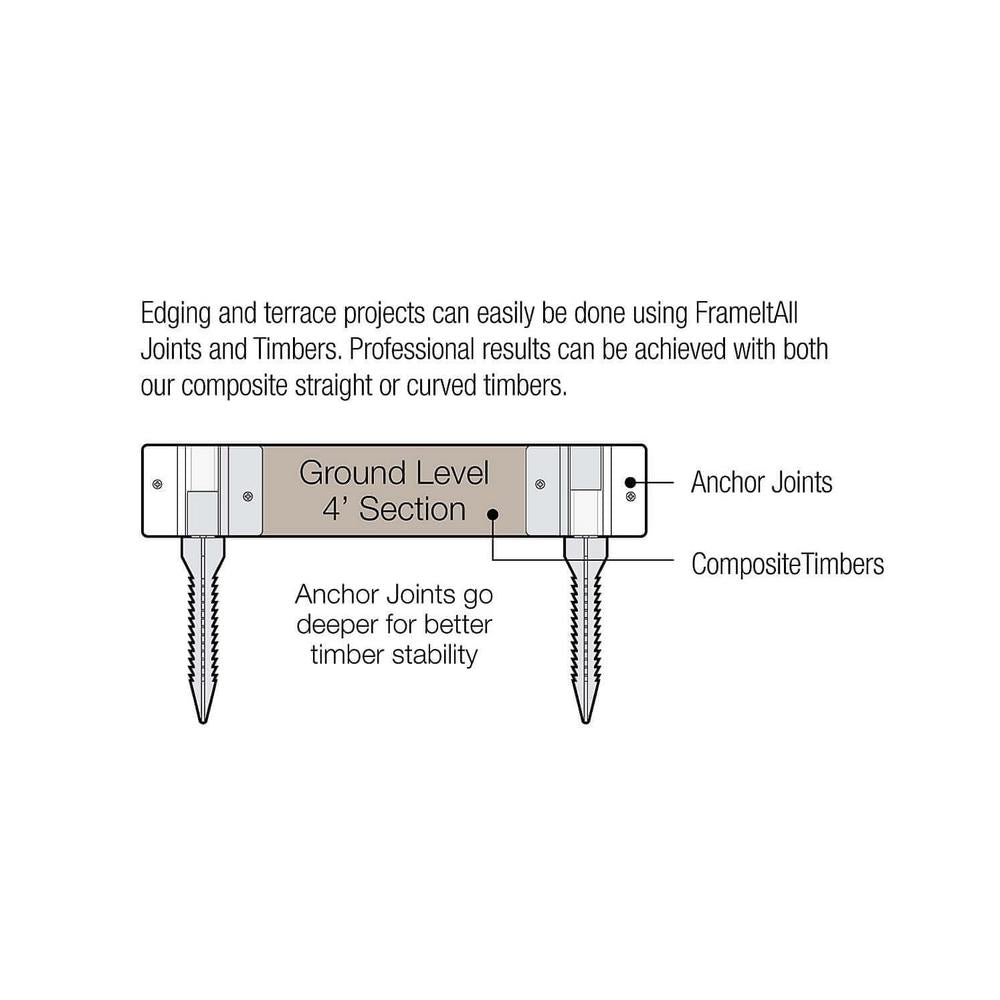 Frame It All playground borders were created by a landscape designer to be an easy, secure and cost-effective way to contain wood and rubber safety surfacing under your child's play area. Unlike heavy wood ties that splinter (and are labor intensive). Frame It All boards and brackets go together with ease. Our borders are made from sustainably sourced wood fibers and food-grade HDPE recycled plastic, so your children are safe from splinters and hazardous chemicals. Each kit contains four curved Uptown Brown 1 profile boards and snap-lock brackets totaling 16 lin. ft. Snap-lock brackets require no tools simply slide and snap in place. Straight kits are also available and can be used interchangeably with curved kits to create natural borders that integrate with your landscape. Helpful hint. When calculating the dimensions of your playground border, a good rule of thumb is to allow 2X the height of your swing set in front and behind the swing and 6 ft. on either side of the swing set. For example, if your swing set is 7 ft. H, you would want 14 ft. of safety surface in front of and behind the swing, for a total depth of 28 ft.