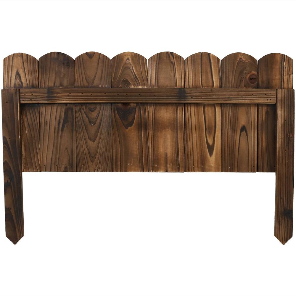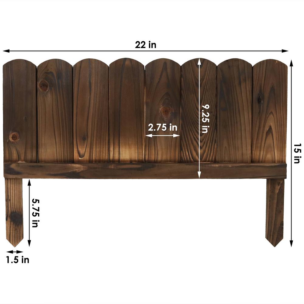 Define the border or edge of any garden or lawn with this country-inspired wooden outdoor fence panel. Featuring a classic scalloped edge, this fence panel will add a decorative touch to plants and flowers while keeping plants contained. Plus, it can also be used as a barrier to define or separate a garden and yard. Don't worry about this fence being crooked or falling down, as it features 2 stakes at the bottom of each panel to stay firmly and securely in the ground. An added benefit, if the panels need to be moved, simply take it out of the ground and move it to the desired location. The panel is conveniently lightweight, portable and can easily be adapted to suit the location.