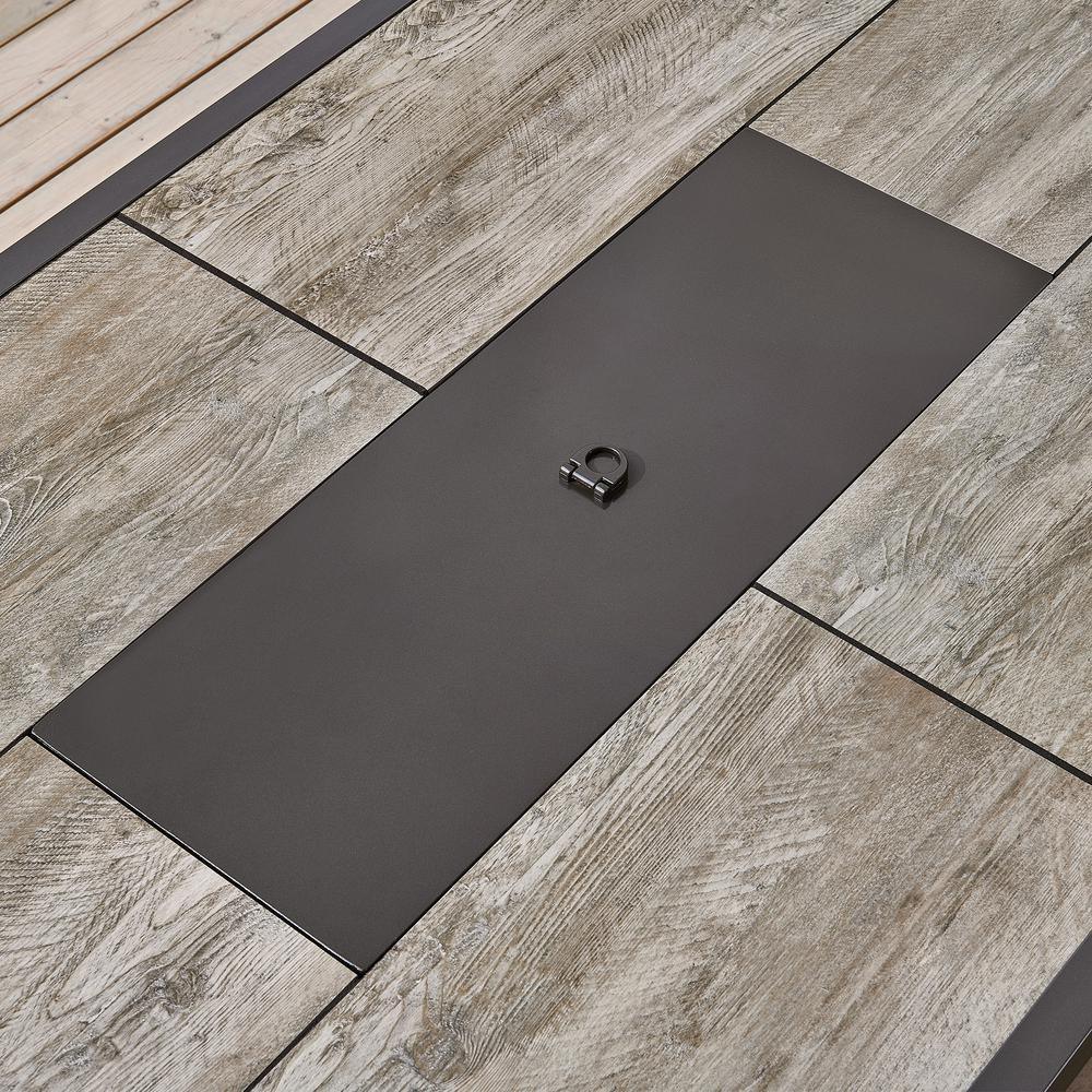 • Contemporary dark brown ceramic porcelain tiled tabletop with aluminum burner lid cover for full table use