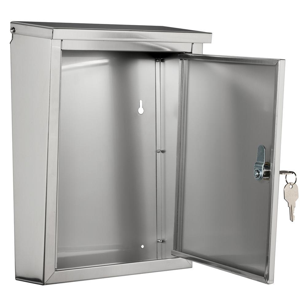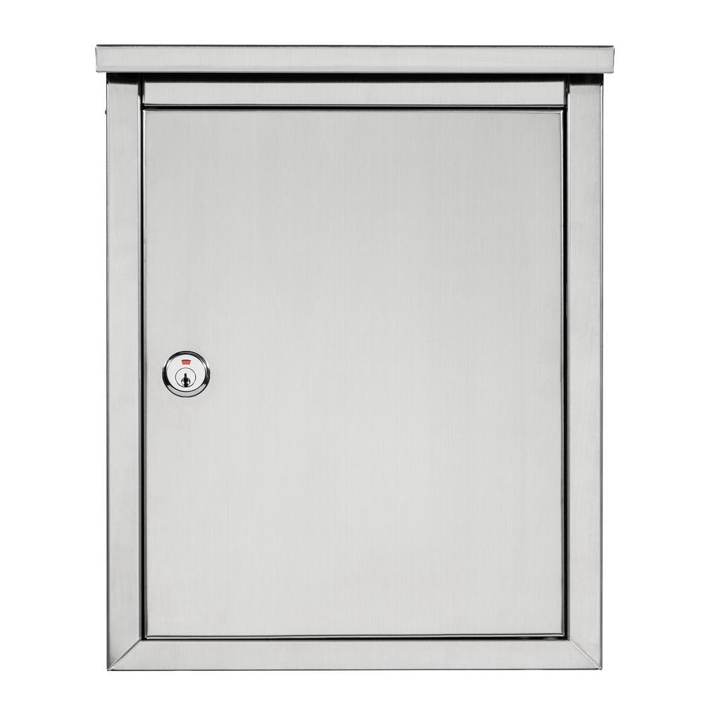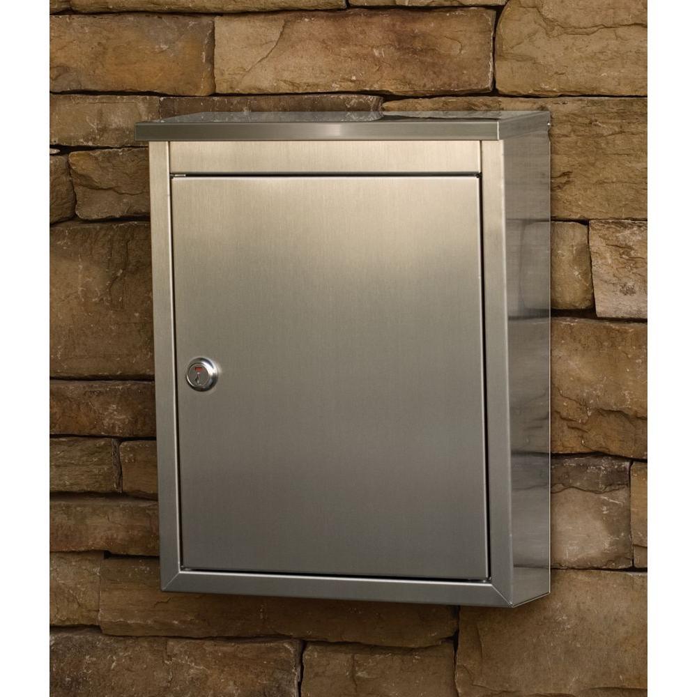 The Architectural Mailboxes Regent Wall-Mount Locking Mailbox features an oversize mail slot and a wide, deep storage compartment. Made from 24-Gauge stainless steel, this durable mailbox also features a stainless-steel cam lock with a lock/unlock indicator to keep your contents secure. Mounting hardware, installation instructions and 2 mail keys are included for easy setup and use.