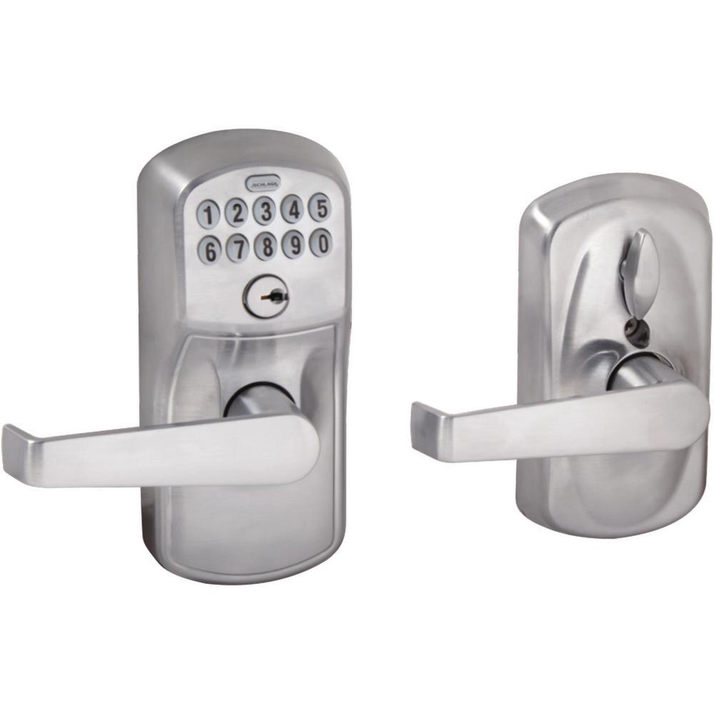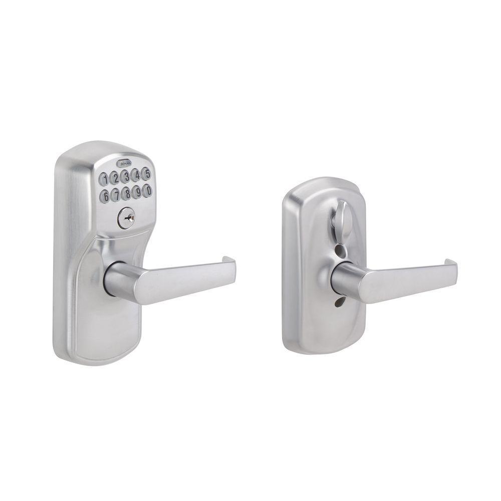 Eliminate the hassle of house keys with the Schlage Elan Satin Chrome Keypad Electronic Door Lever with Plymouth Trim Featuring Flex Lock. With this electronic door lever, you can control entry to your home more easily and securely, and our Flex-Lock feature allows you to set the lock to automatically re-lock after 5 seconds of inactivity. The LED backlight keypad is able to hold up to 19 different user codes for your convenience, and features a low battery indicator. Also, this electronic keypad runs on a single 9-volt battery, which is included. All in a slim profile and stylish trim that pairs perfectly with interior hardware. The Elan lever is sturdy and modest, while the Plymouth trim features an oval shape and straightforward design. The lock becomes especially edgy when finished in Satin Chrome. Plus, it's been designed and tested with strength and durability in mind.