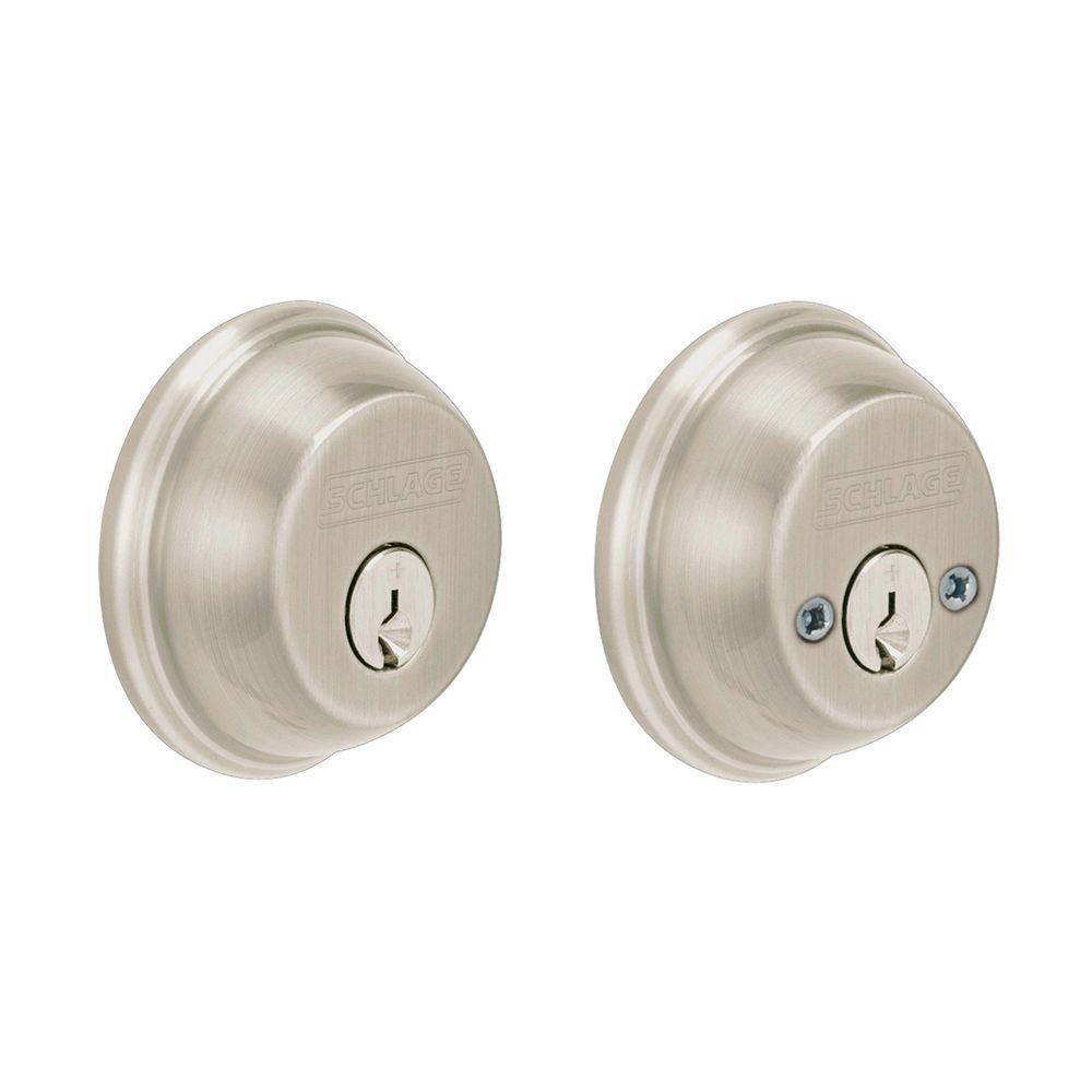 The double cylinder deadbolt provides maximum security protection with style and design. The warm silver tones of Satin Nickel complement light and dark wood grains in addition to a broad spectrum of colors. Schlage has built a legacy of providing the highest level of security to homes and businesses. Install a Schlage, and you install nearly a century of total dedication to security, quality, and innovation.