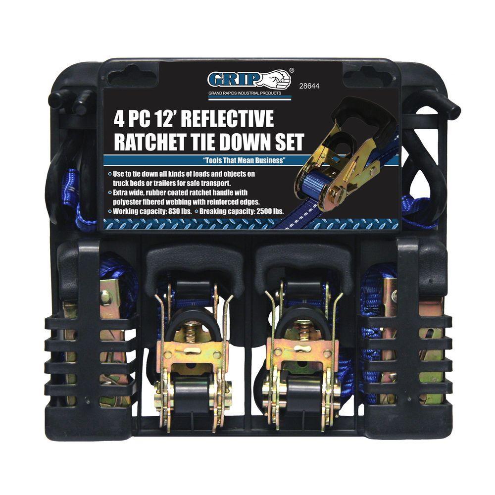 Grip 12 ft. Reflective Ratchet Tie Down (4-Piece)
