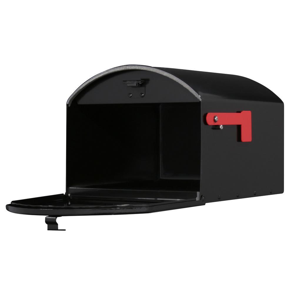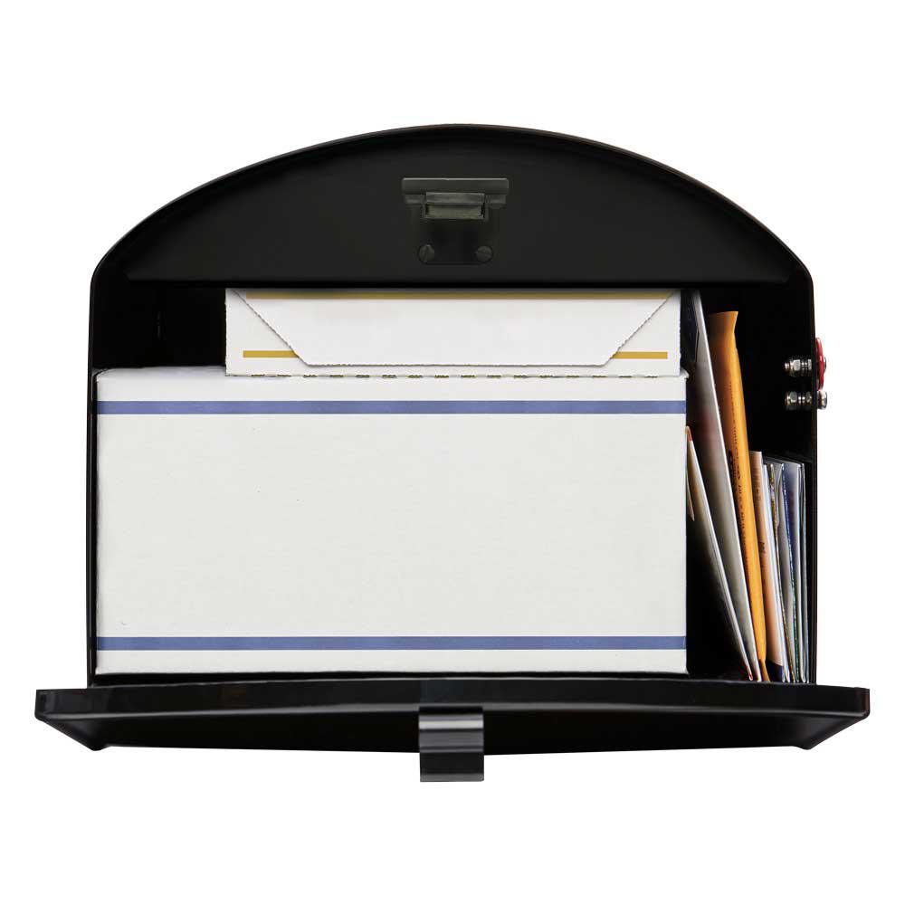 Say goodbye to missed deliveries. The Storehouse mailbox is a powerhouse when it comes to storing large volumes of mail. Its broad profile and extra-large capacity are perfect for online shoppers because it can hold multiple packages alongside mail, magazines, and padded envelopes. The classic design belongs in any rural, suburban, or urban neighborhood. Crafted from heavy-duty galvanized steel, the Storehouse features a weatherproofing design to protect its contents. In addition, the powder-coated black finish helps withstand natural outdoor elements. The Storehouse mailbox comes fully assembled for quick and easy installation.