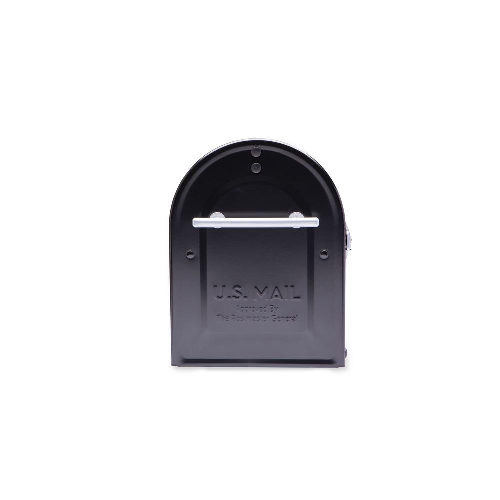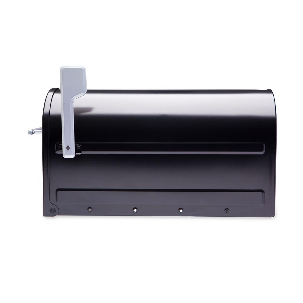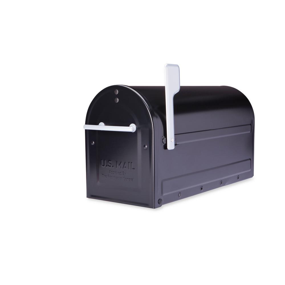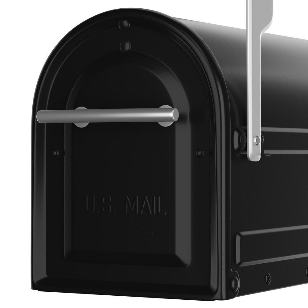 Boulder Post Mount Mailbox Black with Premium Silver Handle and Silver Flag