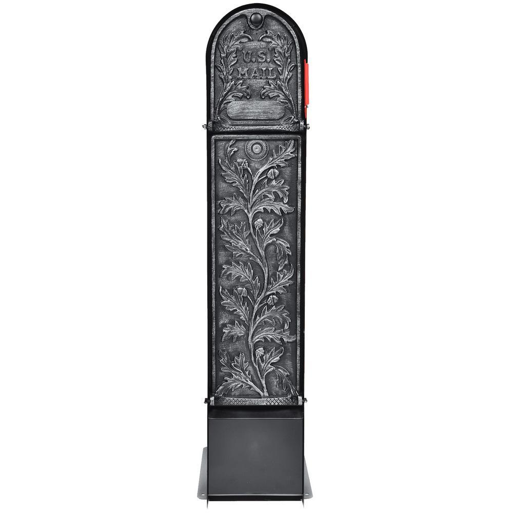 Climbing Leaf 4-Door Front and Back Access Lockable Ground Mount Mailbox in Silver Pewter